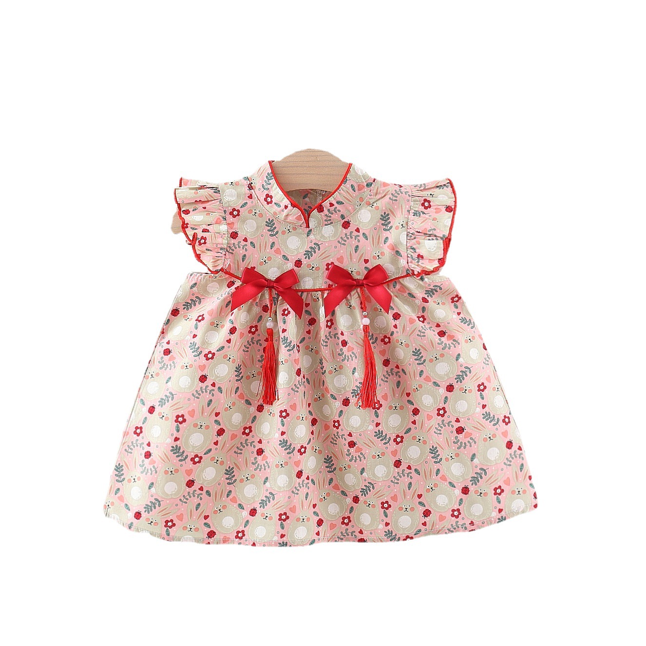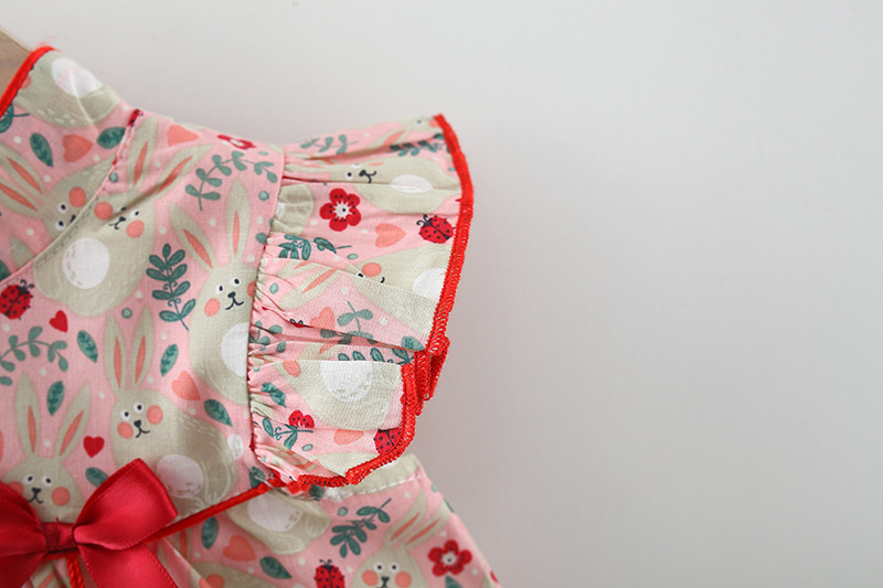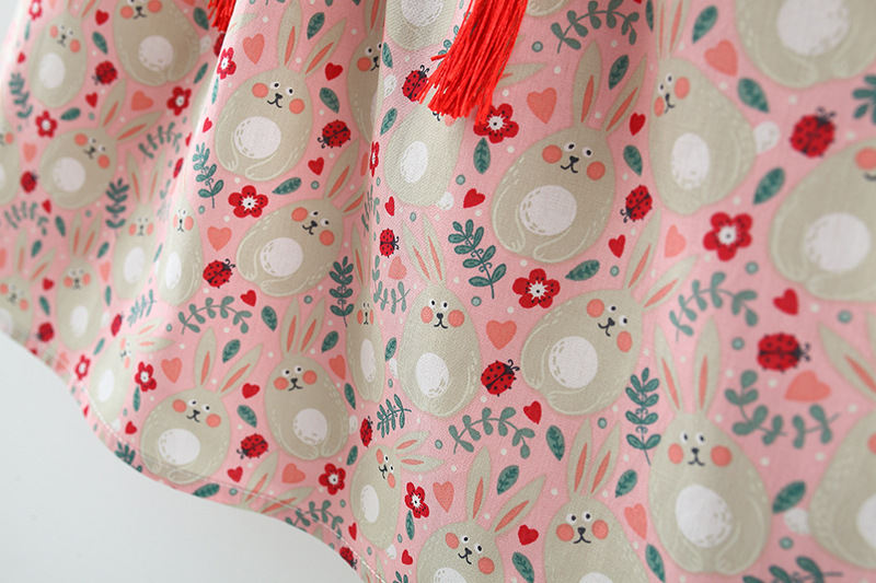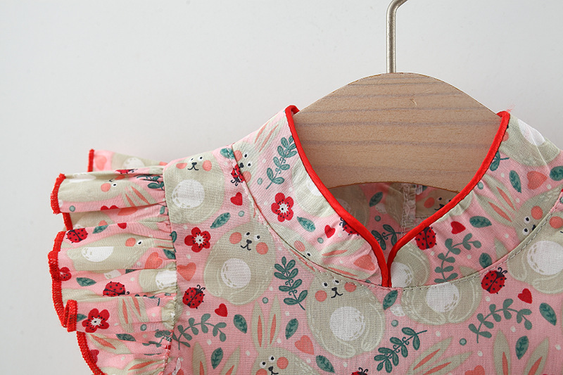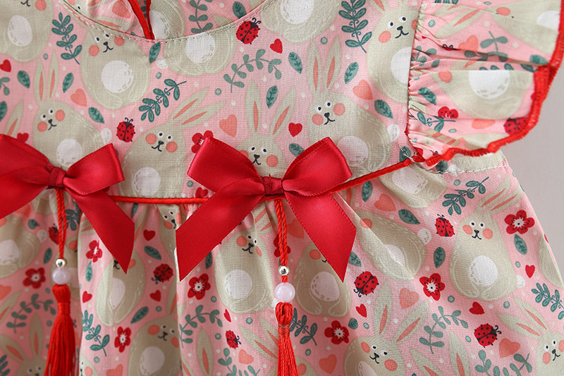 Color: pink flower rabbit pink, rabbit peony cheongsam