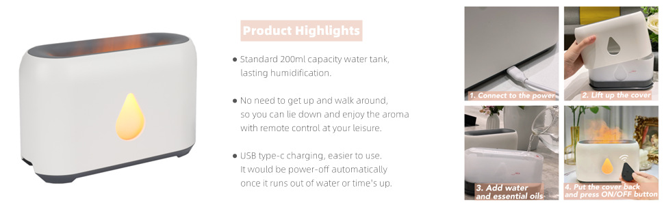 Two-color Aroma Diffuser Home Office Desk Surface Panel 3D Flame Humidifier