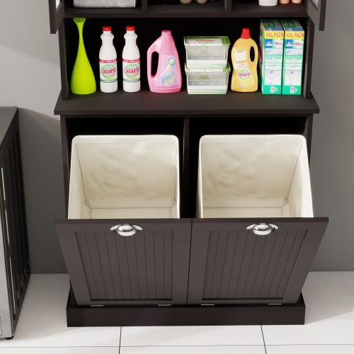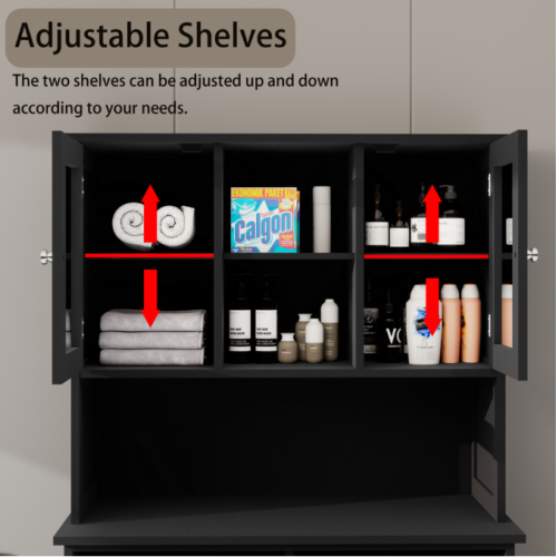 Product Name:Two-Compartment Tilt-Out Dirty Laundry Basket Tall Bathroom Cabinet with 2 Adjustable Shelves-Black