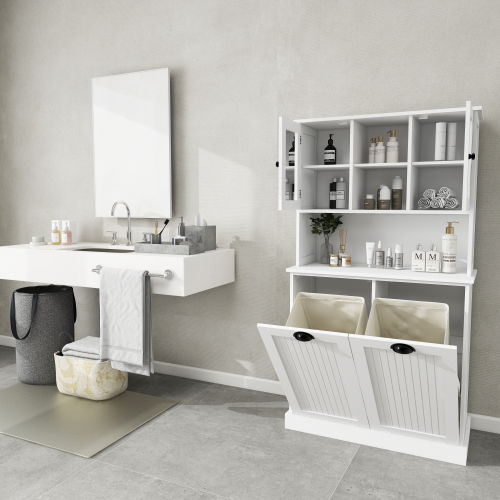 • The white Laundry Sorter Cabinet is fashionable in design and suitable for various decoration styles.