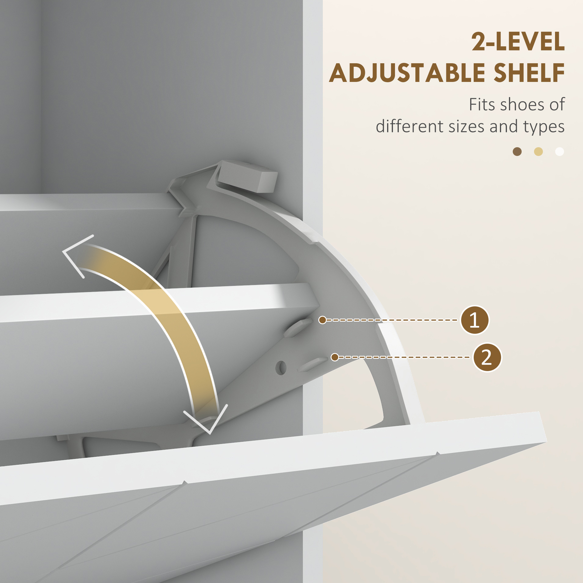 Protect shoes, in a space-conscious way with this narrow shoe cabinet. The two doors protect footwear from dust and similar to keep them fresh and clean. It comes with two flip drawers, holding in total 12 shoe pairs; move the adjustable shelves to fit in differently-sized pieces. This white shoe cabinet also comes with a top drawer for smaller pieces, complete with anti-tipping straps to fix to a wall.