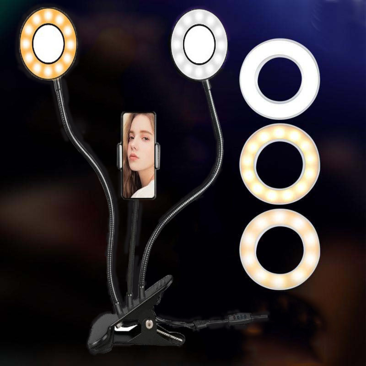 Two-head USB Port Small Clip Type Anchor Selfie Beauty Lamp