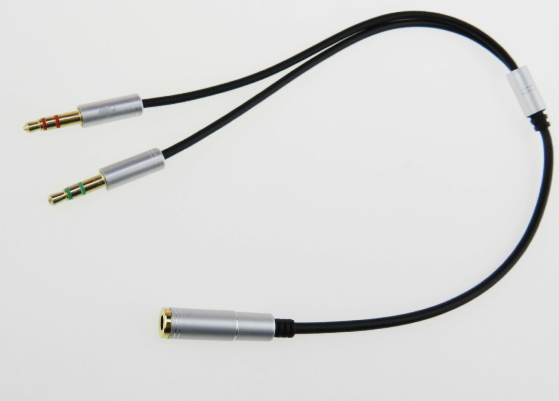 Product function: plug the two 3.5mm male heads of this adapter cable into the notebook,
