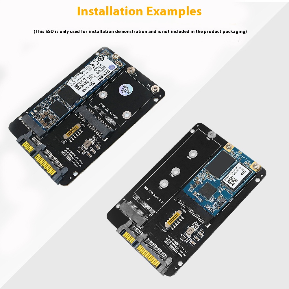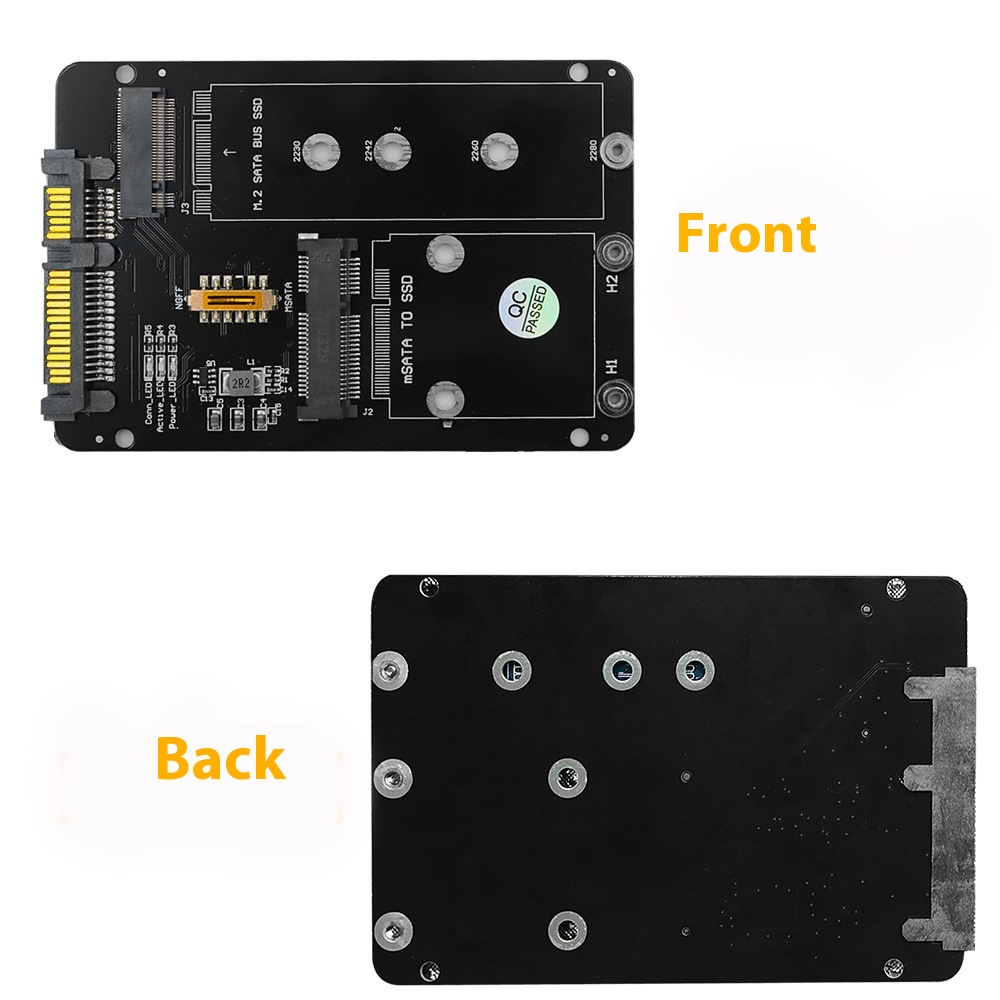 Feature: 1. Support full size mSATA SSD. 2. Support NGFF M.2 Key B SATA-bus SSD. 3. Support 4 sizes NGFF M.2 Socket SSD: type 2230/ 2242/ 2260/ 22x80 4. Transparent to the operating system and does not require any software drivers 5. LED indicates power status. 6. PCB Dimension: 65x90mm(LxW) 7. Support Hi-Speed SATA3/ 6Gbps mass storage interface.
