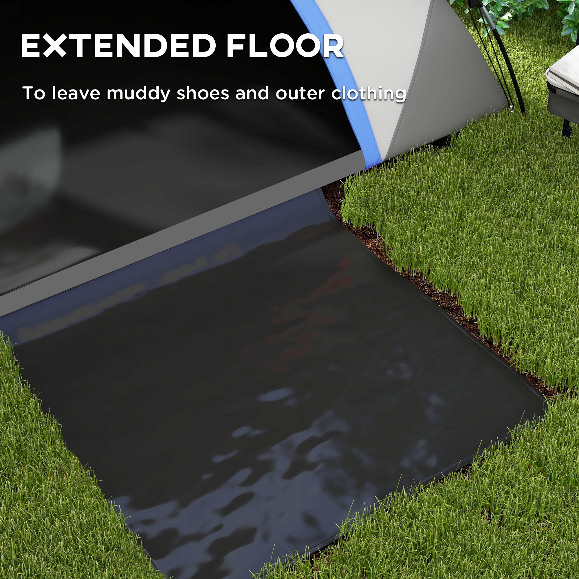 A safe home for camping trips, thanks to this two man lightweight tent. The fabric shell offers 3000 mm of rain protection, making it suitable for use in light to mild weather. The mesh window brings fresh air inside, with a large door for easy access. Comes with a front floor panel to leave muddy shoes , so no dirt comes inside. 10x ground stakes, 4x guy ropes and carry bag included.