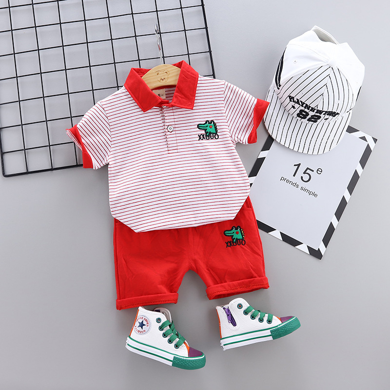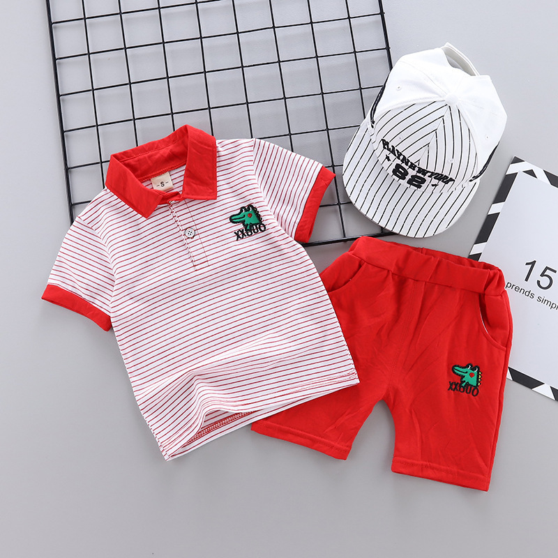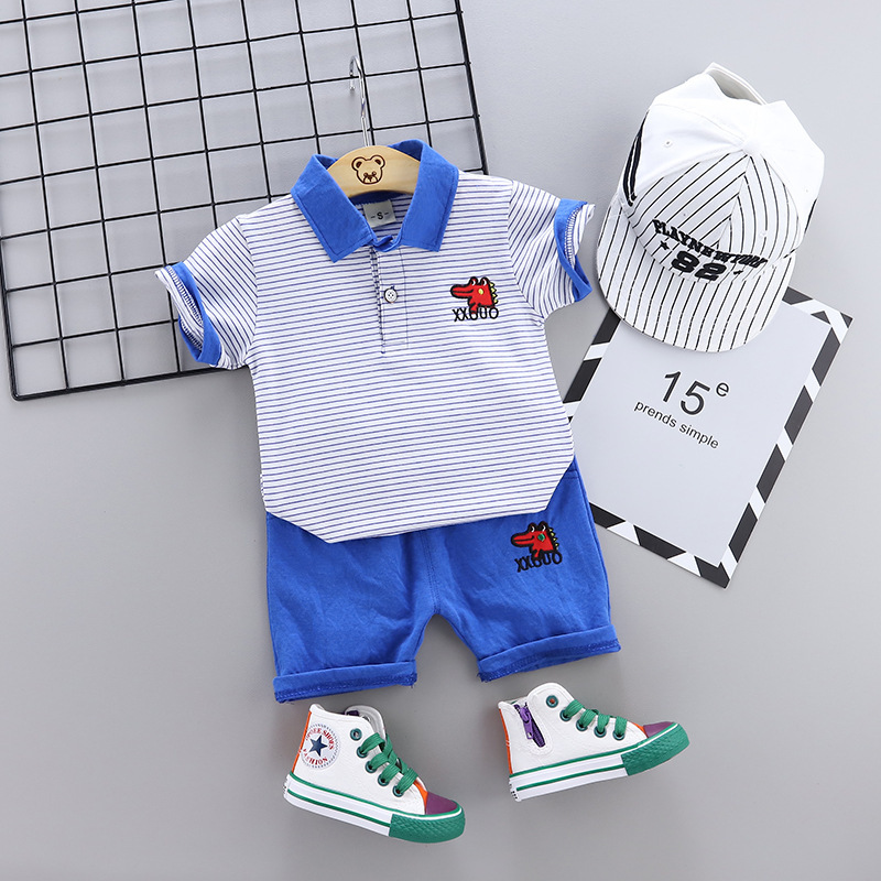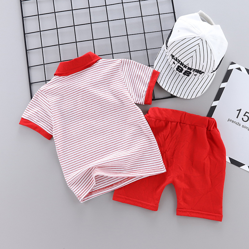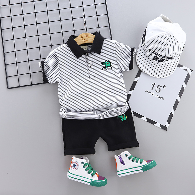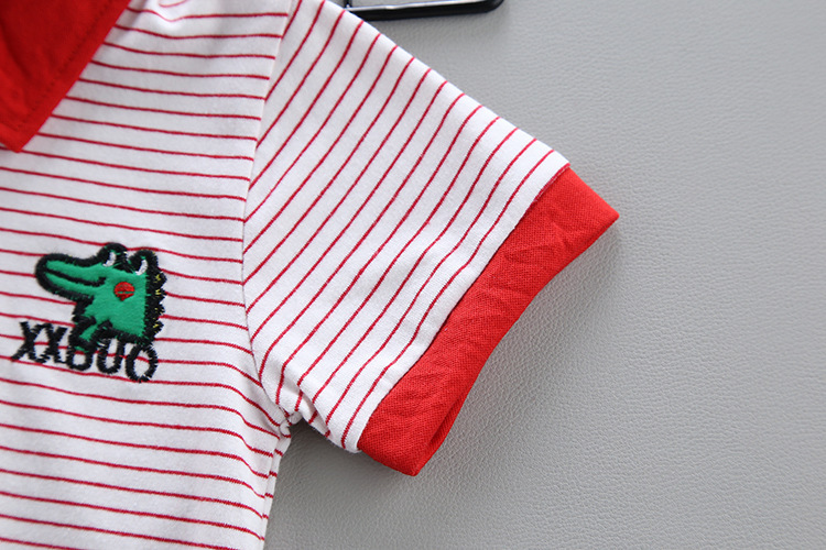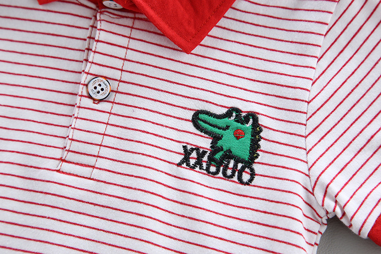 Two-piece cartoon short-sleeved striped polo shirt