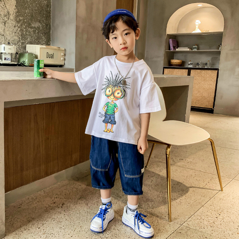 Two-piece Cartoon Short-sleeved Thin Cropped Pants