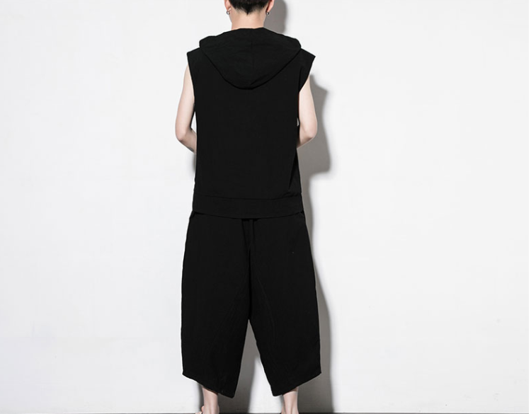 Features:Sleeveless vest, cropped trousers