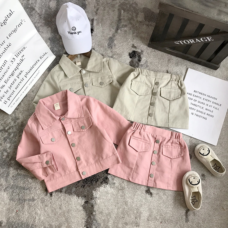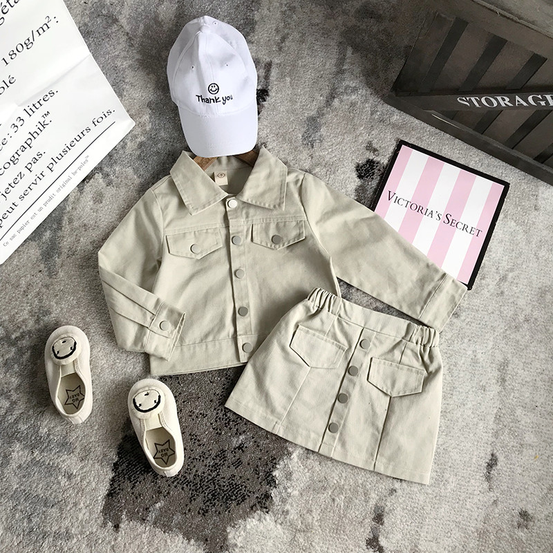Two-piece Cotton Denim Jacket And Short Skirt For Little Girls