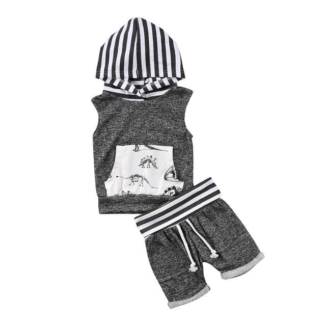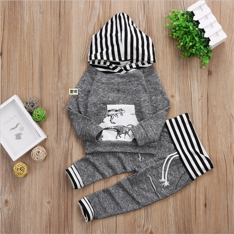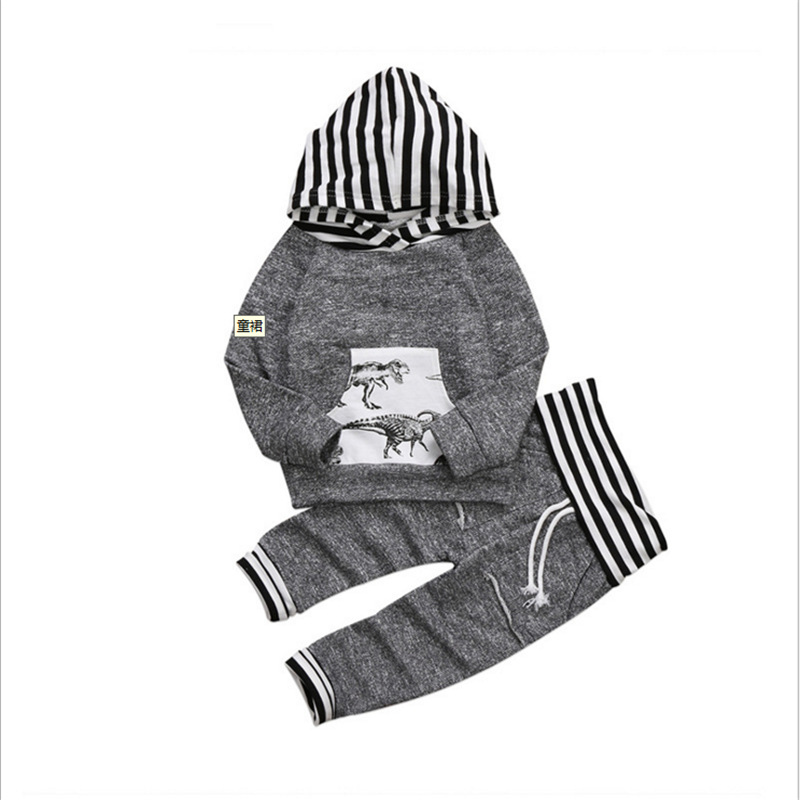 Two-piece dinosaur print hooded suit