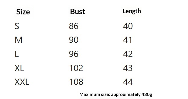 Sizes: S, M, L, XL, XXL