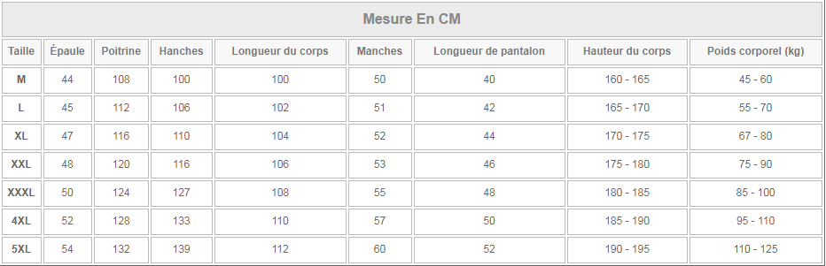 Size: M recommended 90-109 kg, L recommended 110-129 kg, XL recommended 130-149 kg, XXL recommended 150-169 kg, 3XL recommended 170-190 kg, 4XL recommended 190-210 kg, 5XL recommended 210-230 kg , 6XL recommends 230-250 kg, 7XL recommends 250-270 kg
