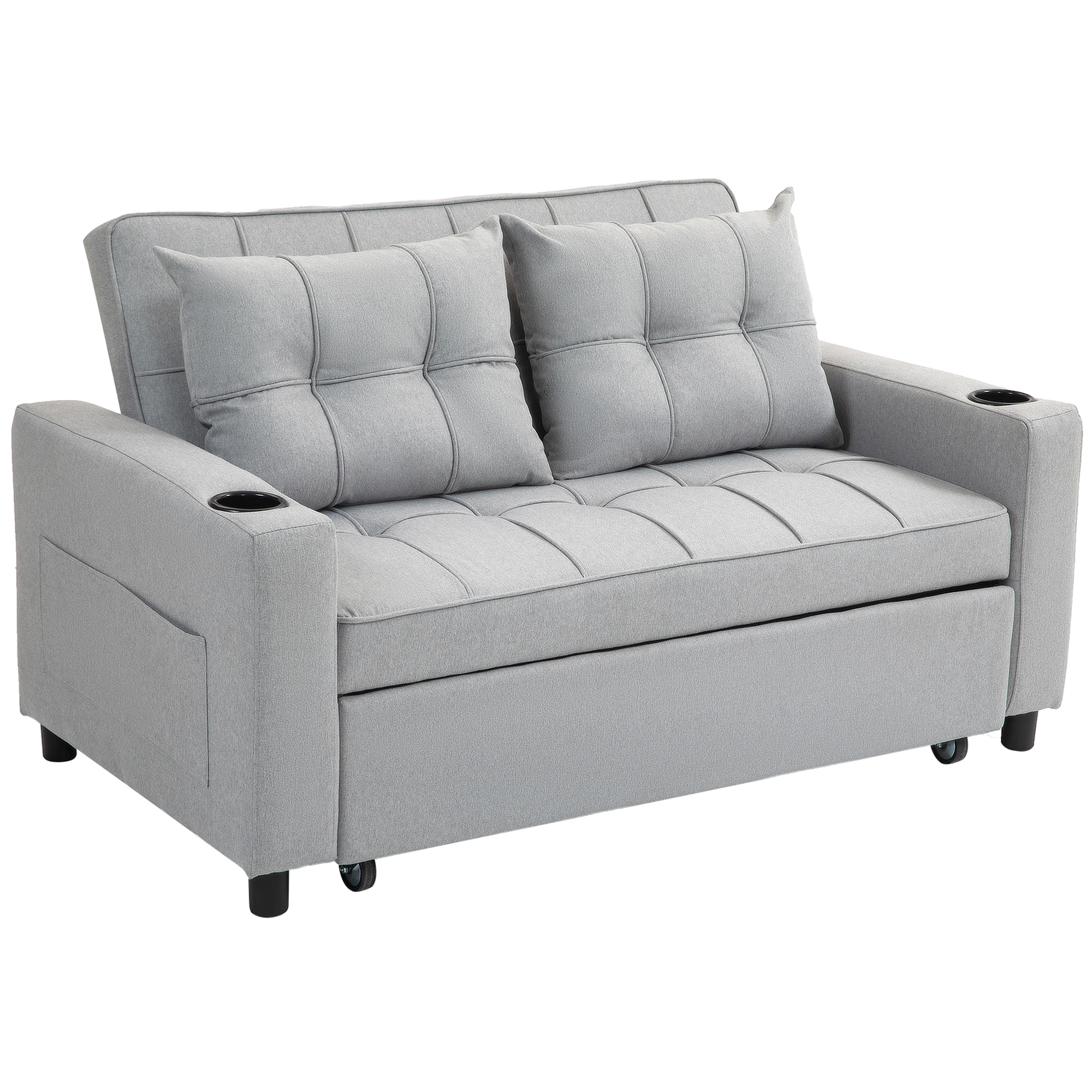 From sitting to sleeping, this click clack sofa bed does it all. From a sofa to a double bed: a handy double-use piece. The three-level adjustable back allows you to set to the angle you find most comfortable. Filled with high-density sponge and wrapped in smooth linen-look upholstery, this two-seater sofa is a soft and comfortable piece - filled with 'S' springs and elastic bands to keep the shape. Complete with handy pockets and cup holders.