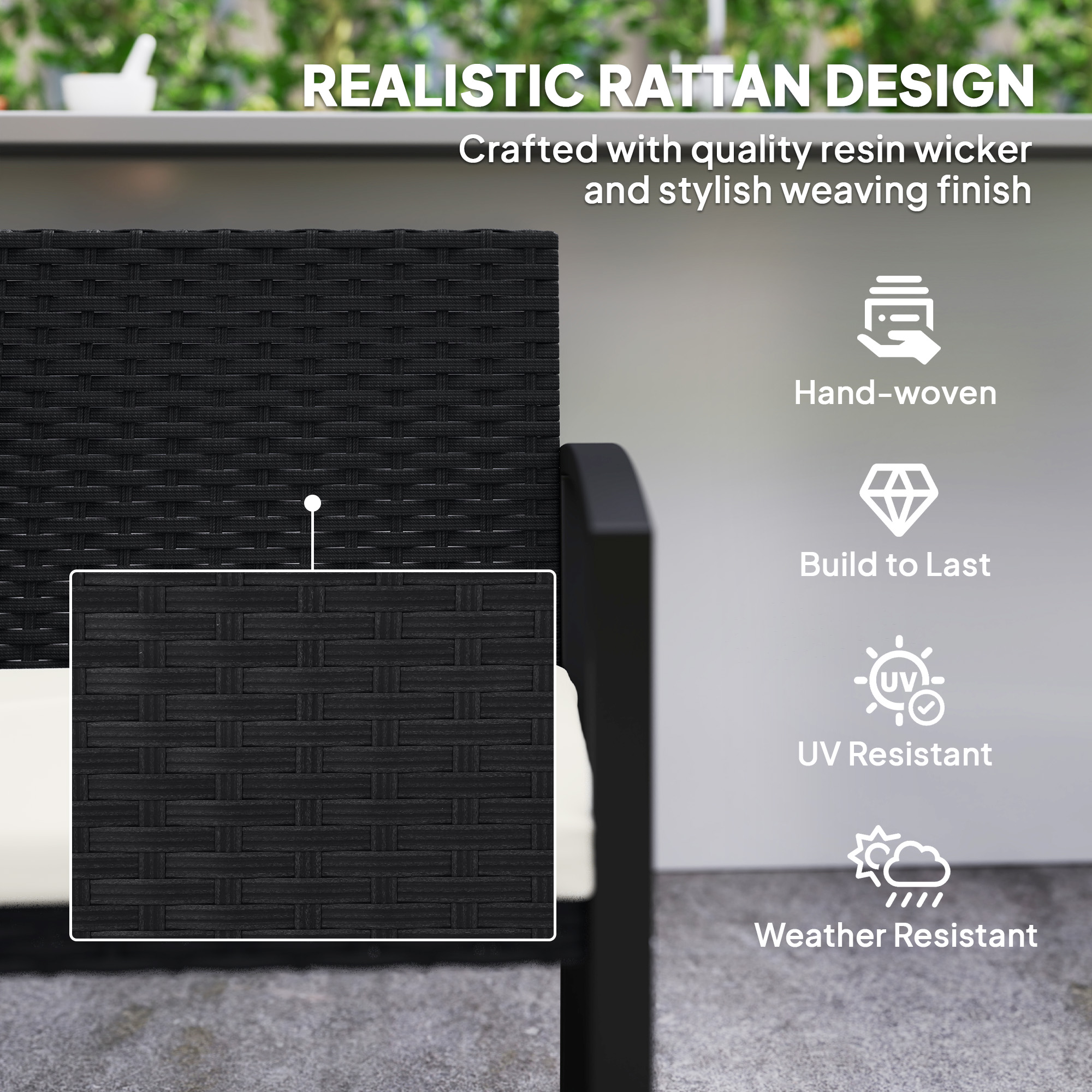 Sit down outdoors in style and comfort, with this two seater garden bench. The powder coated steel frame for a strong piece, fitted with a rattan back and seat for garden style. Fitted with a padded seat cushion so you'll sit comfortably, rattan bench is complete with a removable and washable cover for hygiene.