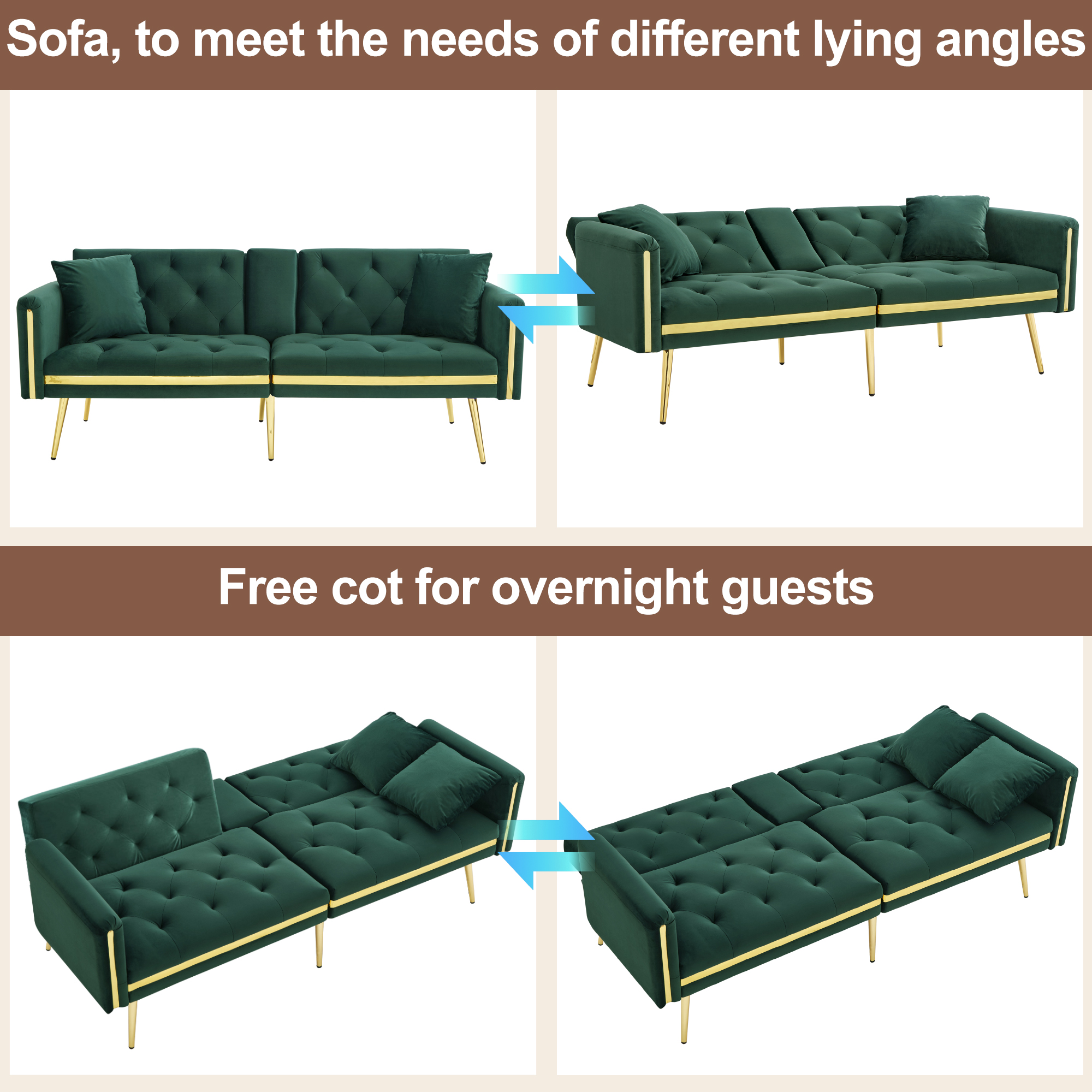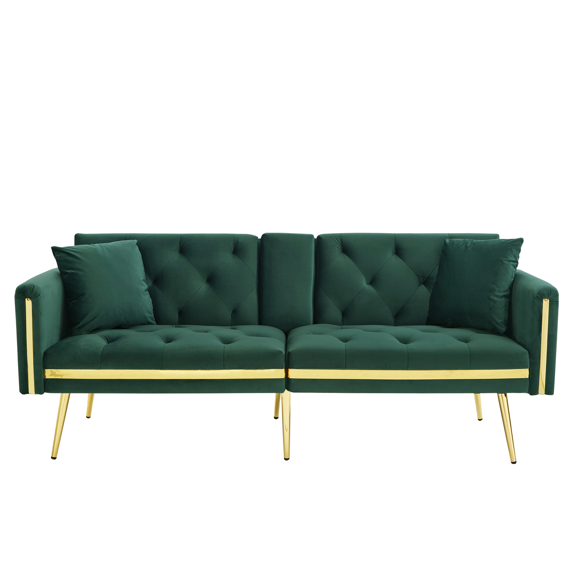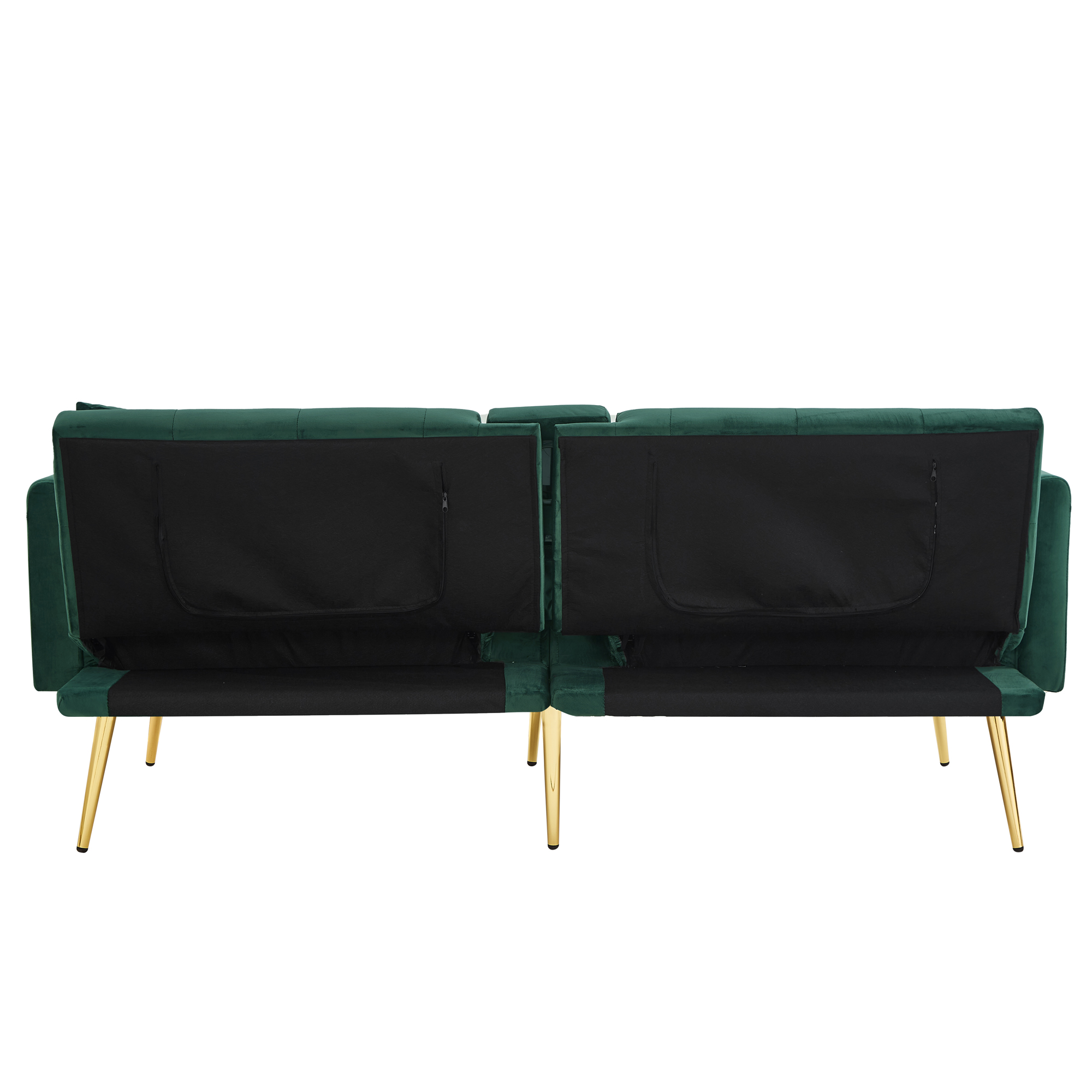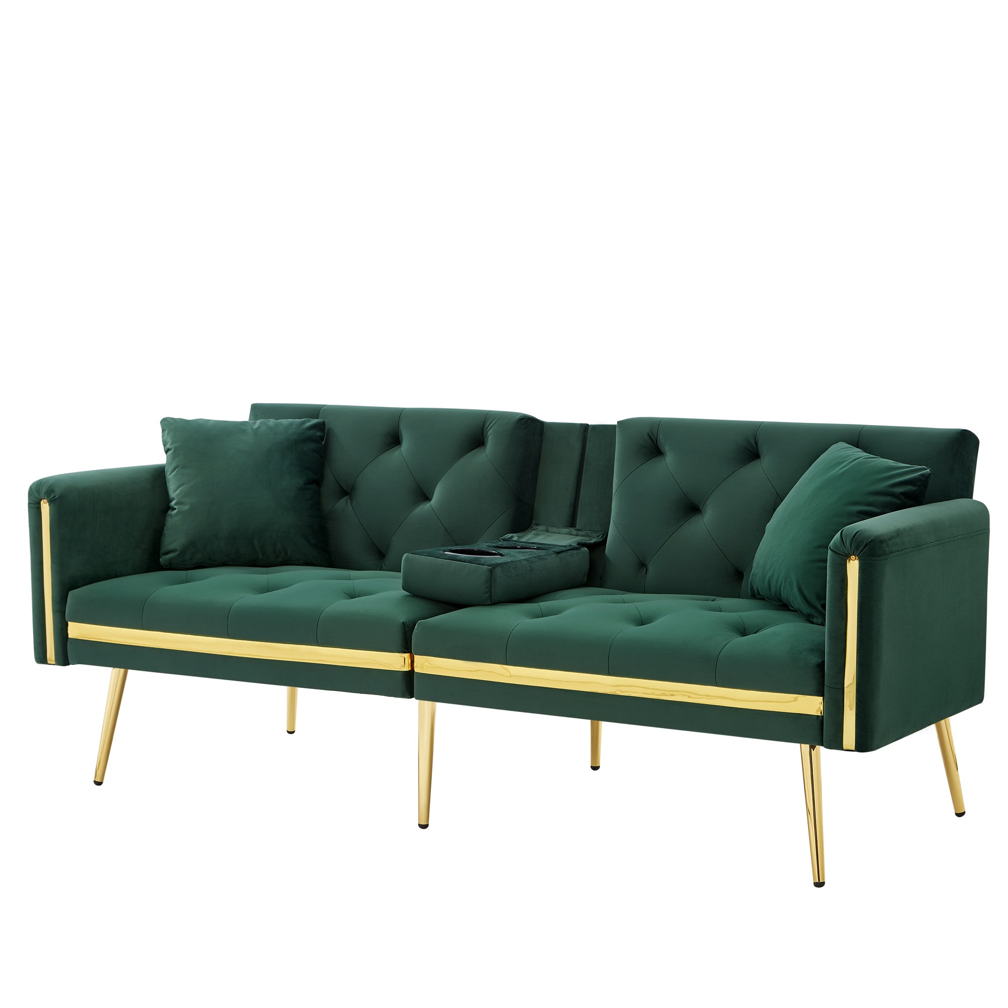 Product Name:Two-seater sofa bed with adjustable backrest, gold accents and built-in cup holders - convertible into a comfortable and space-saving two-seater sofa for both the living room and bedroom