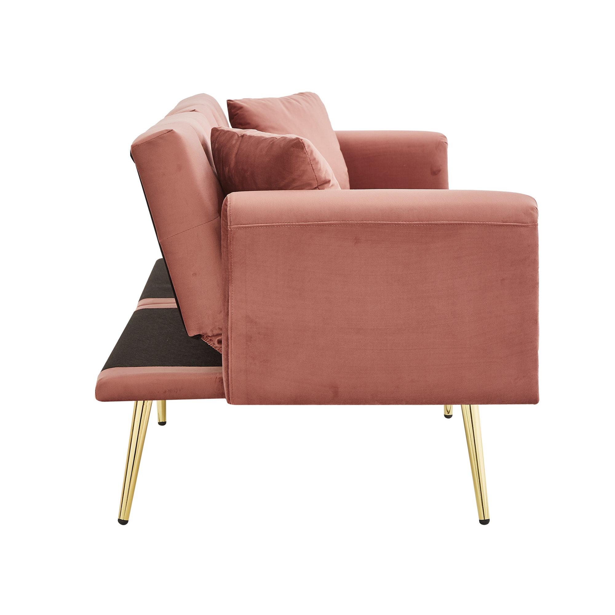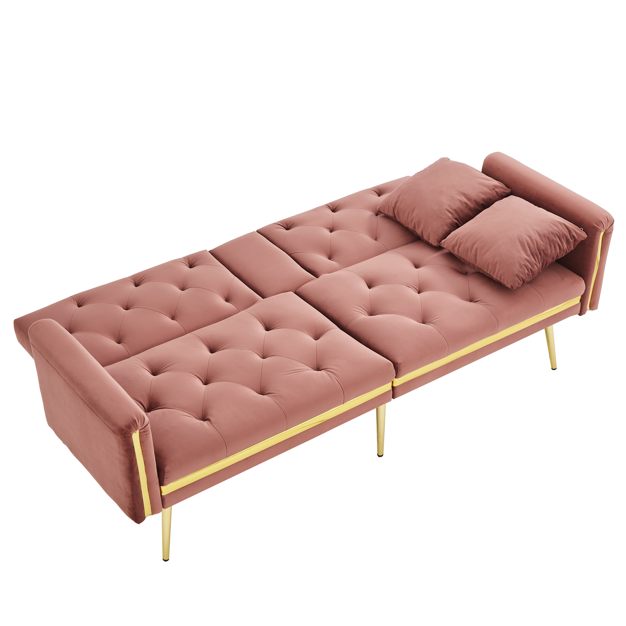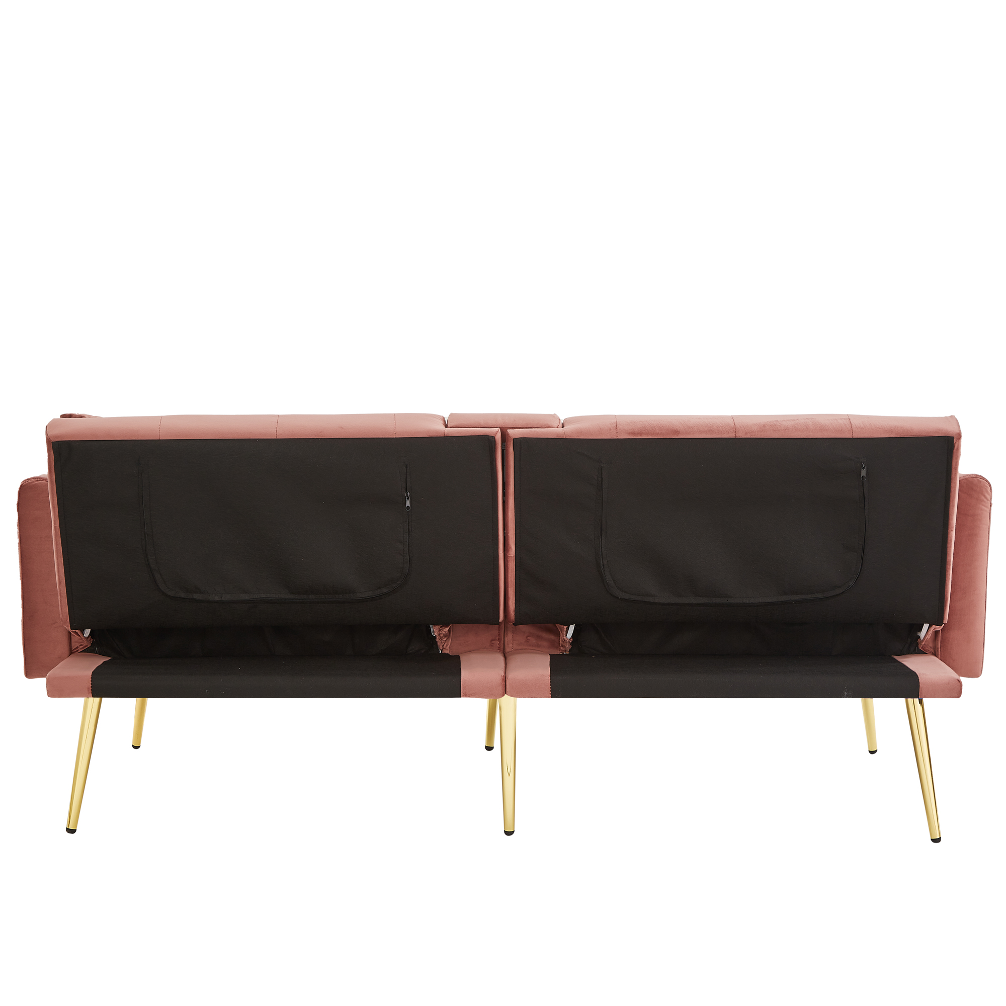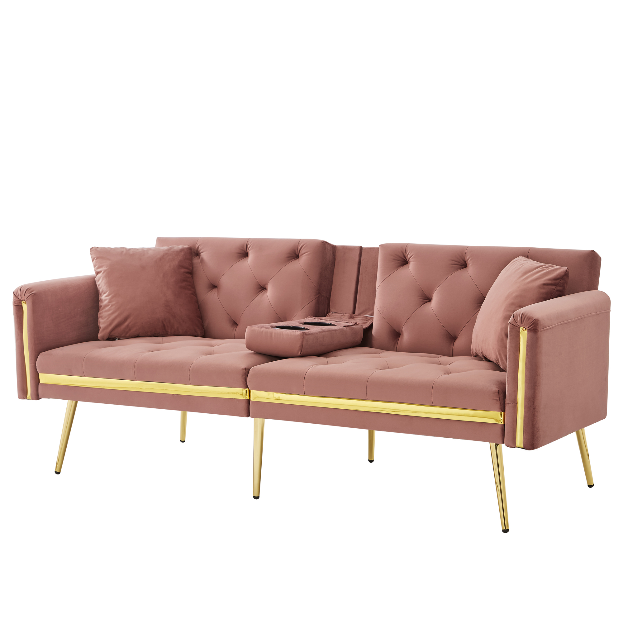 Product Name:Two-seater sofa bed with adjustable backrest, gold accents and built-in cup holders - convertible into a comfortable and space-saving two-seater sofa for both the living room and bedroom