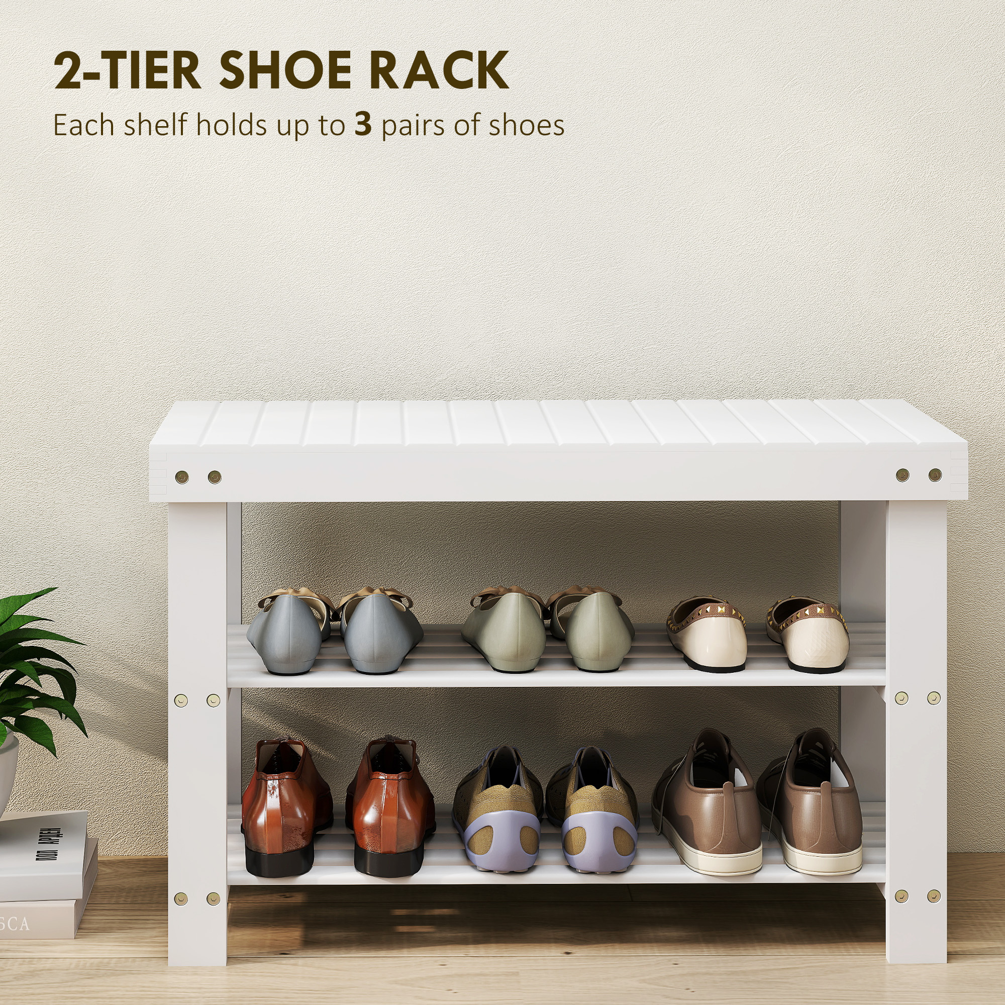 The beautiful way to hold footwear and give you a place to change - this small shoe bench. It's made from bamboo for a strong and beautiful structure - leave it how it is, or customise to your liking. With two slatted shelves there's room for six footwear pairs - be it shoes, boots, heels or trainers. And thanks to the flat top, you also have a place to sit.