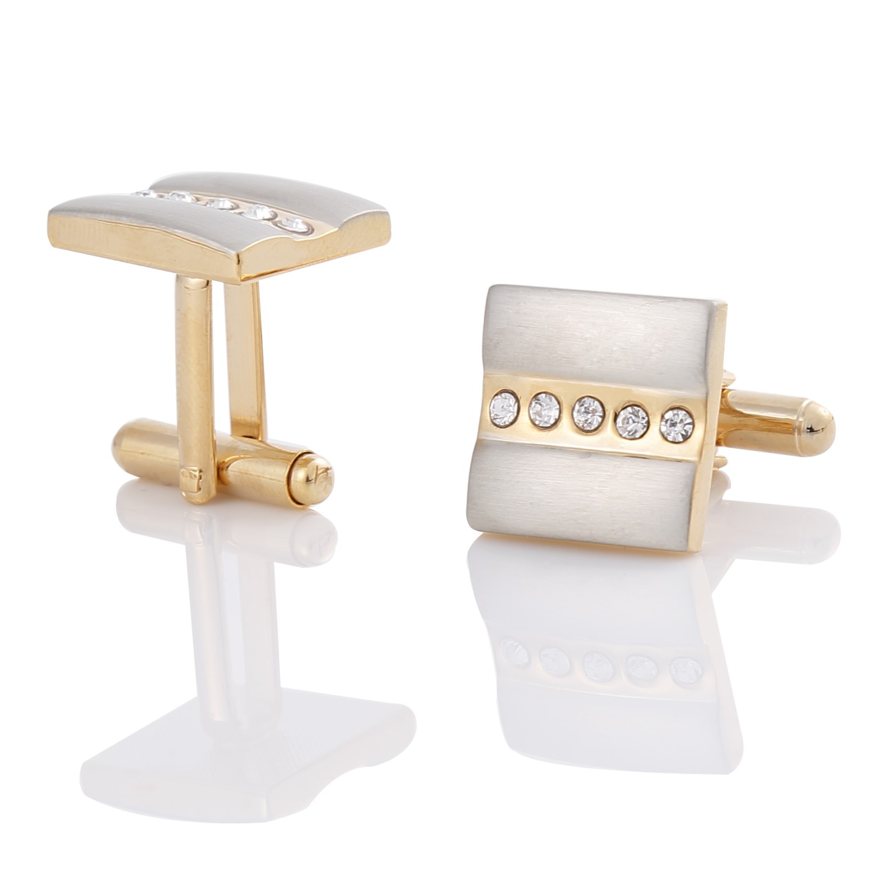 Product informationModeling: geometricTreatment process: electroplatingCrystal type: white crystalPacking: bulkPacking listPair of cufflinks
