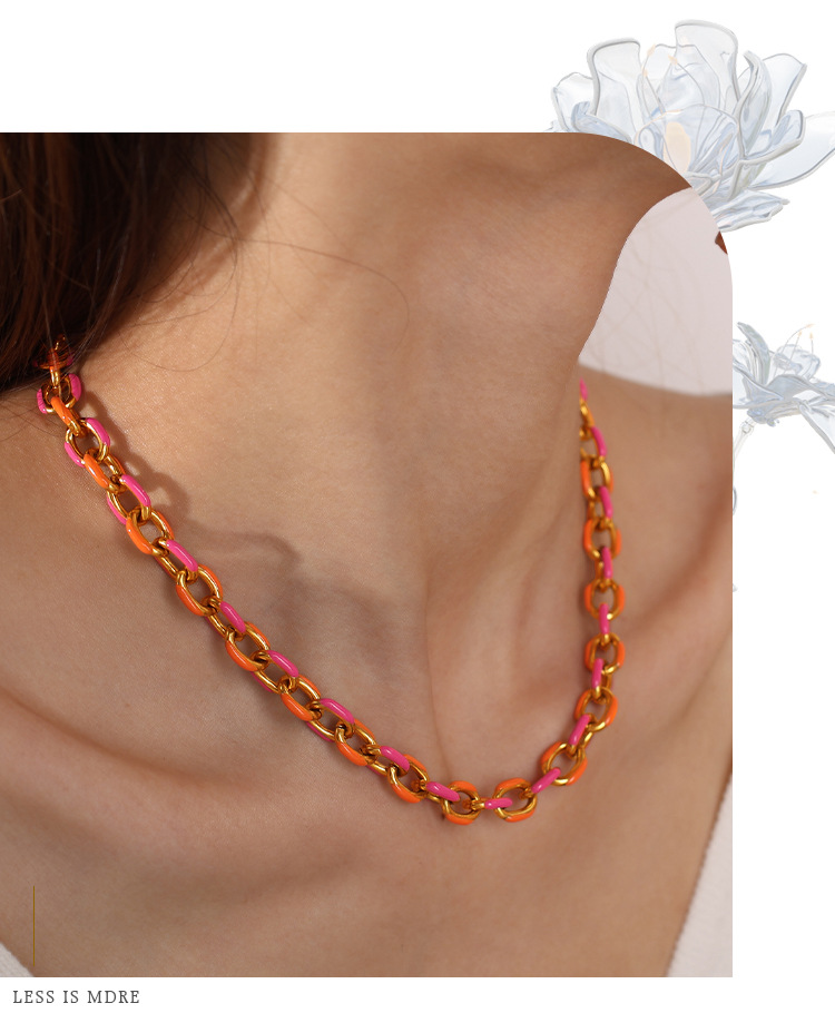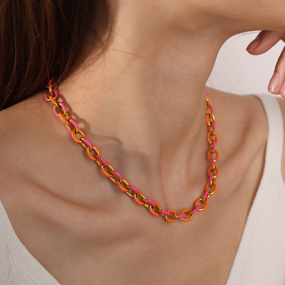 Two-tone Orange And Gold Chain Choker Sweet And Refreshing