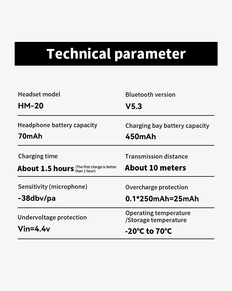 Function: waterproof, noise reduction, ultra-long life battery, call function, voice control, support music