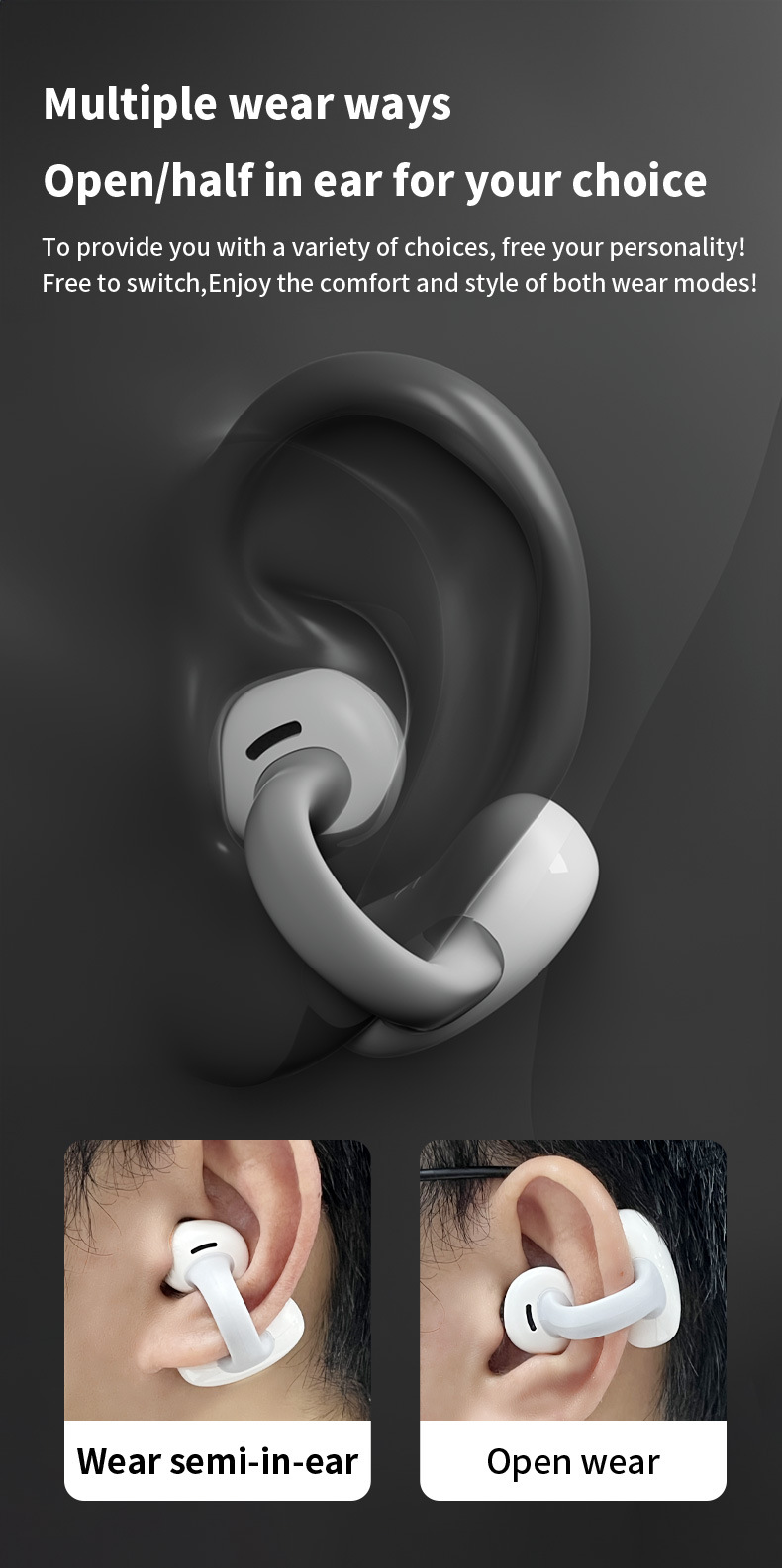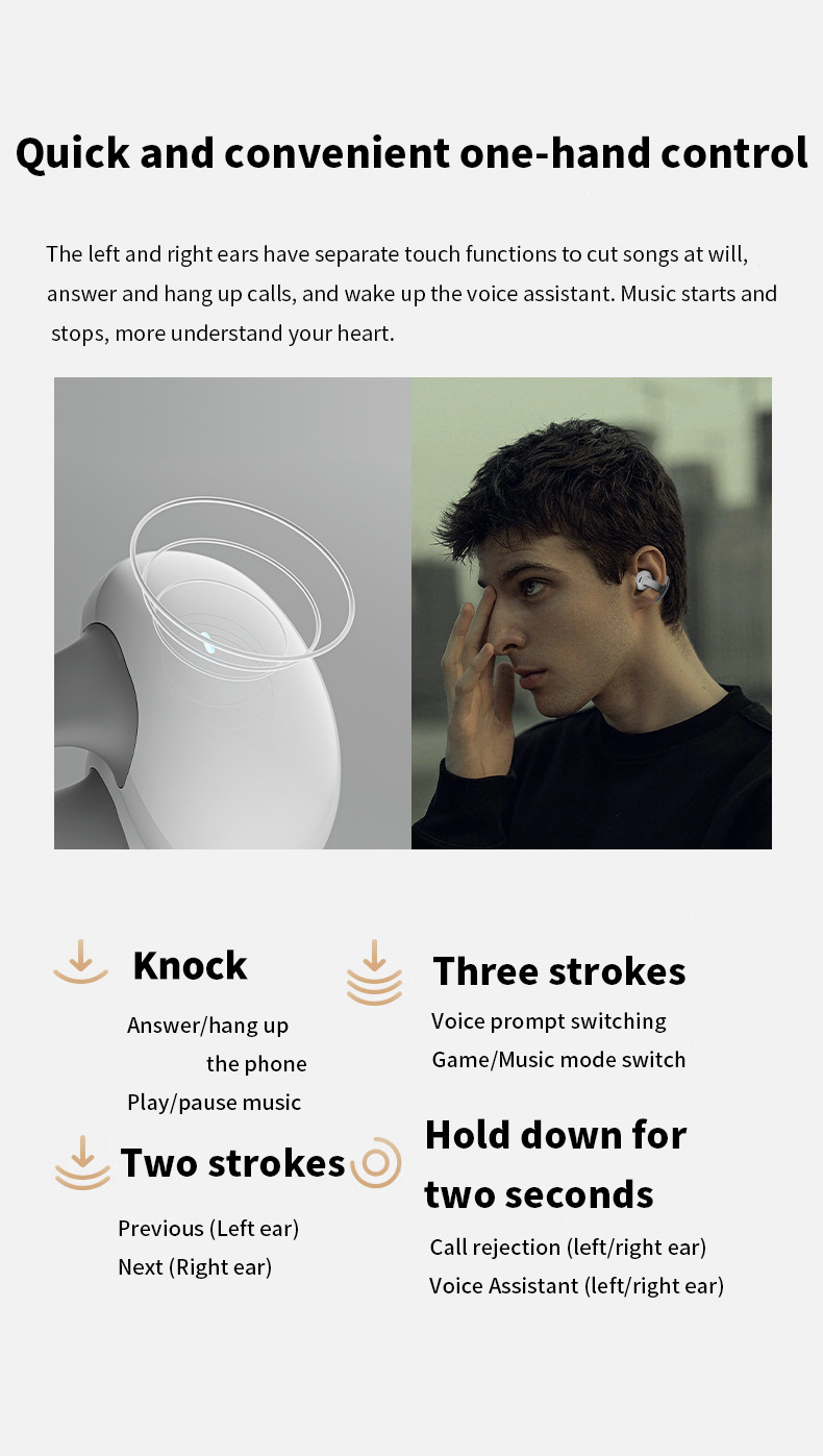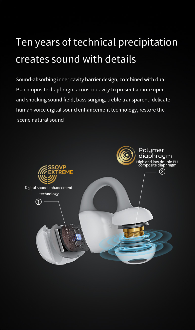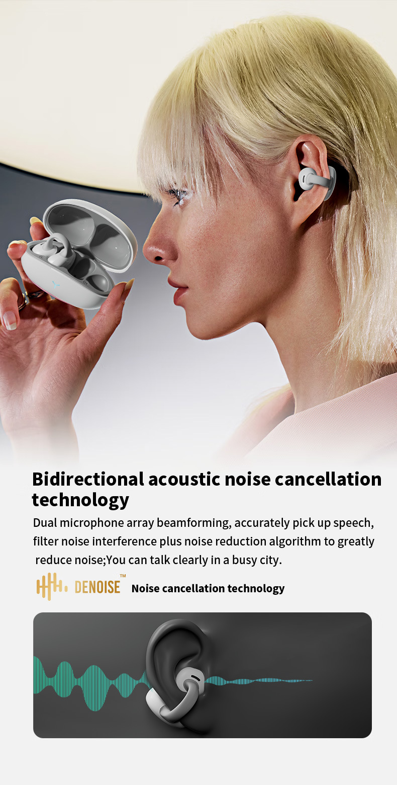 TWS Clip-on Wireless Bluetooth Headset Long Endurance Noise Reduction