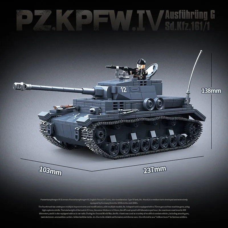 Product information:Color: Panzer IVMaterial: PlasticApplicable age: Youth (7-14 years old)Category: Building blocks