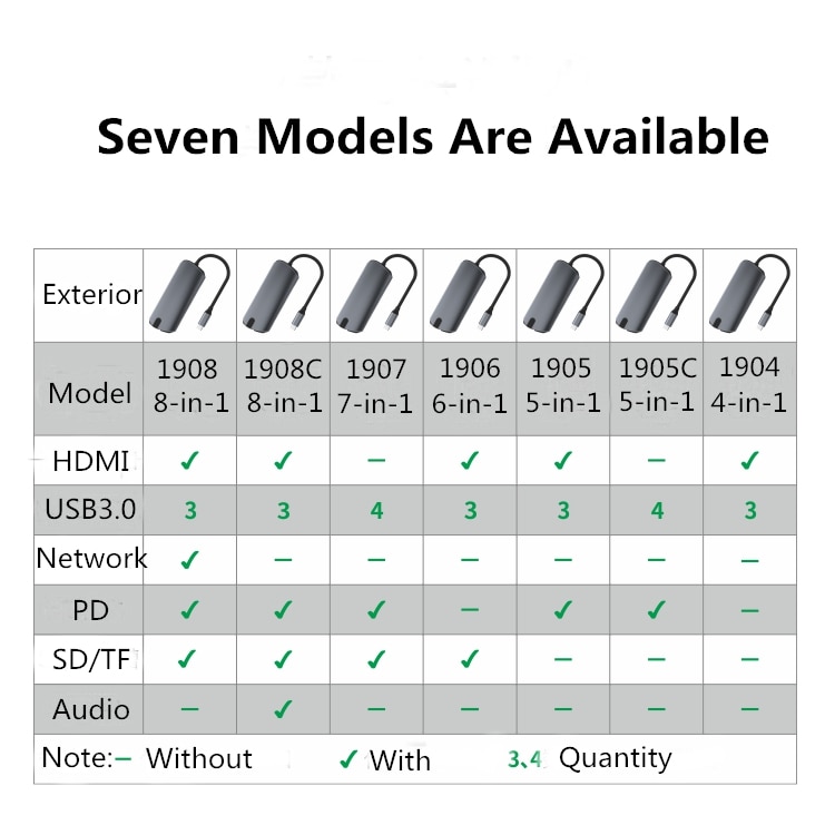 Number of interfaces: four in one 1904, five in one 1905C, five in one 1905, six in one 1906, seven in one 1907, eight in one 1908C, eight in one 1908