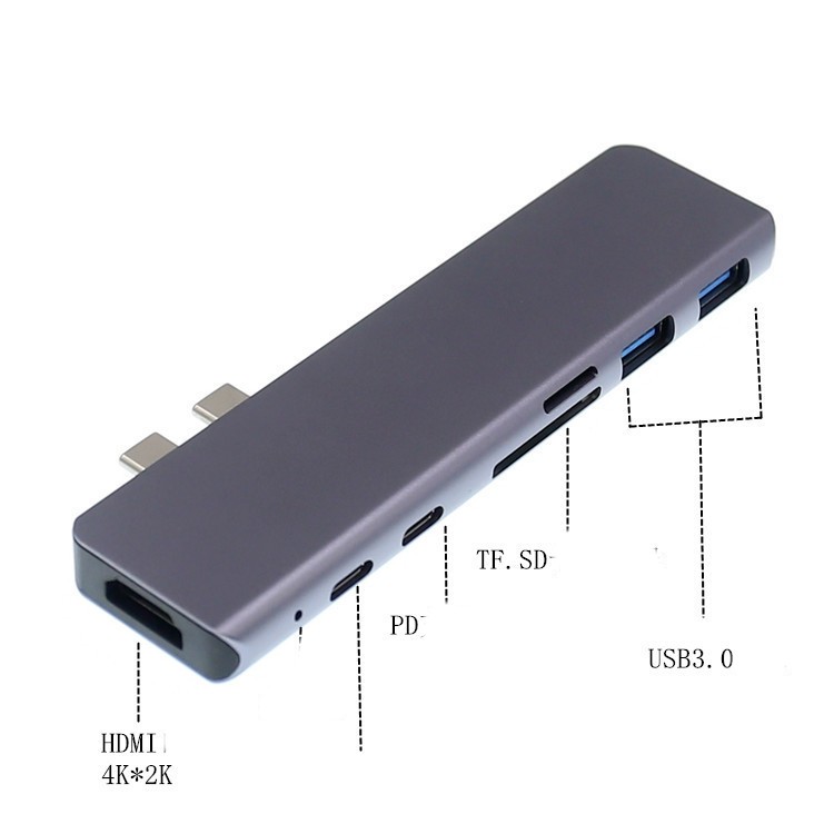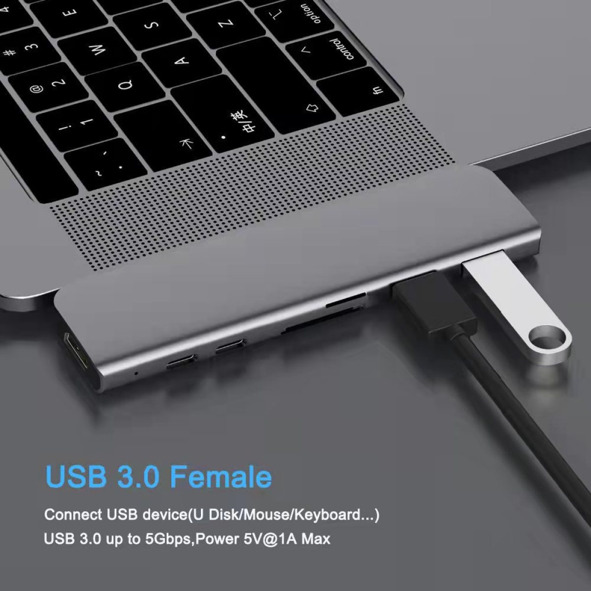 Product features: This product is a portable multifunctional converter, through the digital signal input with USB 3.1 Thunder 3 (PD mode) interface into (20VPD+ card reader data +2*USB3.0 HUB+HDMI 4K video) multifunctional applications.