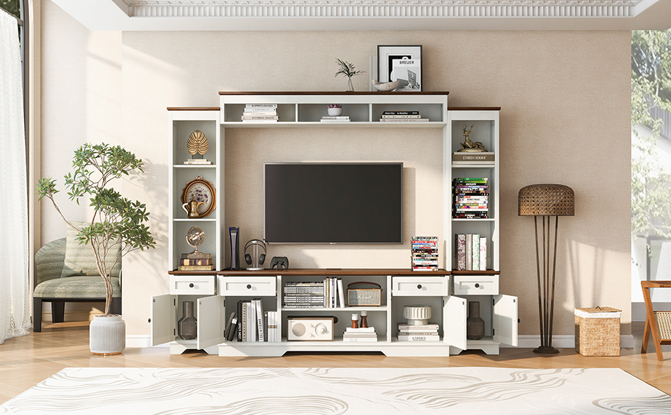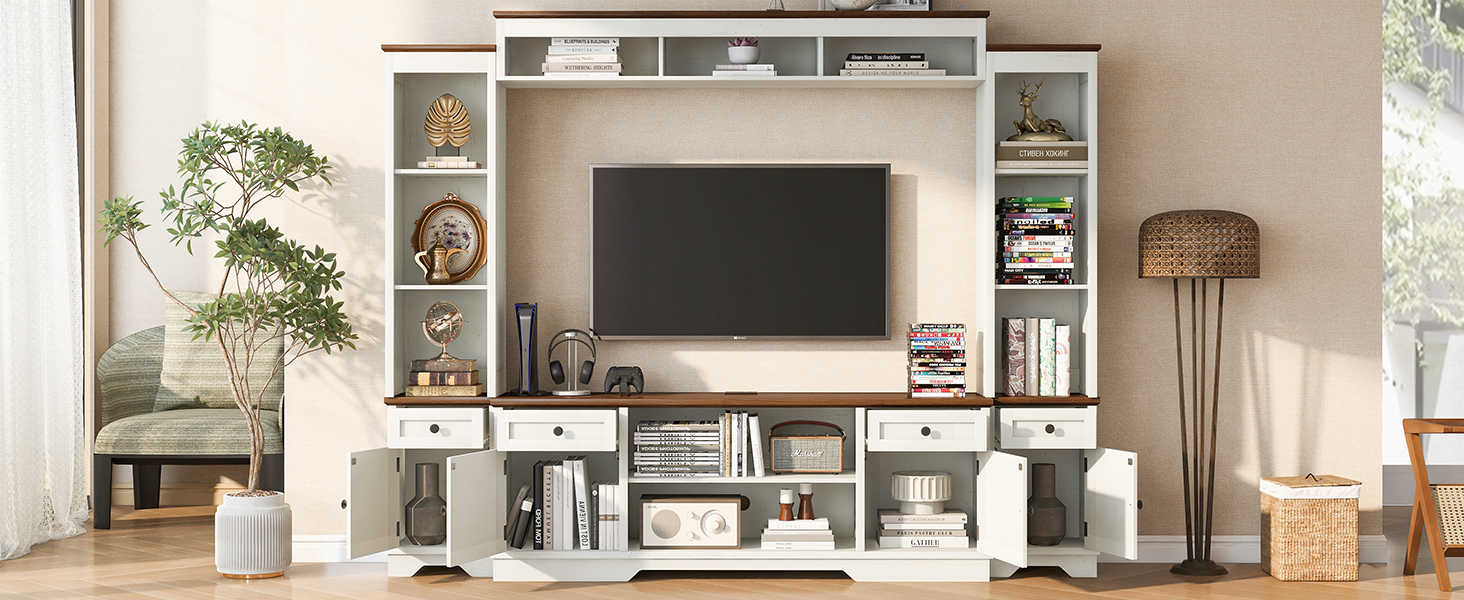Product Name:U-Can 98.8" W Wall Unit Entertainment Center with Bookshelves for TVs up to 80", Modern TV Stand Media Console with Cabinets and Adjustable Shelves for Living Room