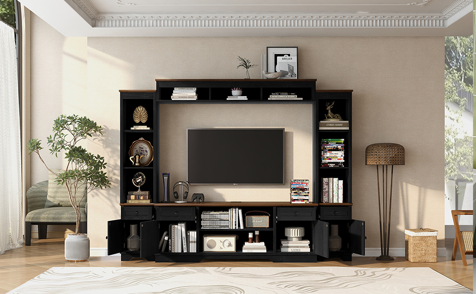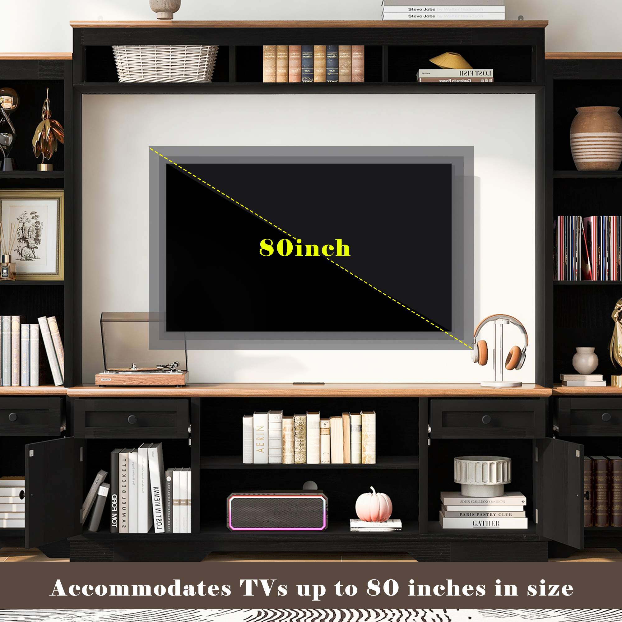 Product Name:U-Can 98.8" W Wall Unit Entertainment Center with Bookshelves for TVs up to 80", Modern TV Stand Media Console with Cabinets and Adjustable Shelves for Living Room