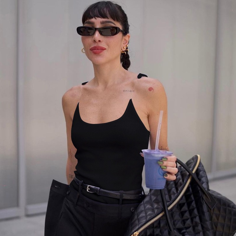 U-neck Slim Fit Slimming Inner Outer Wear Solid Color Vest