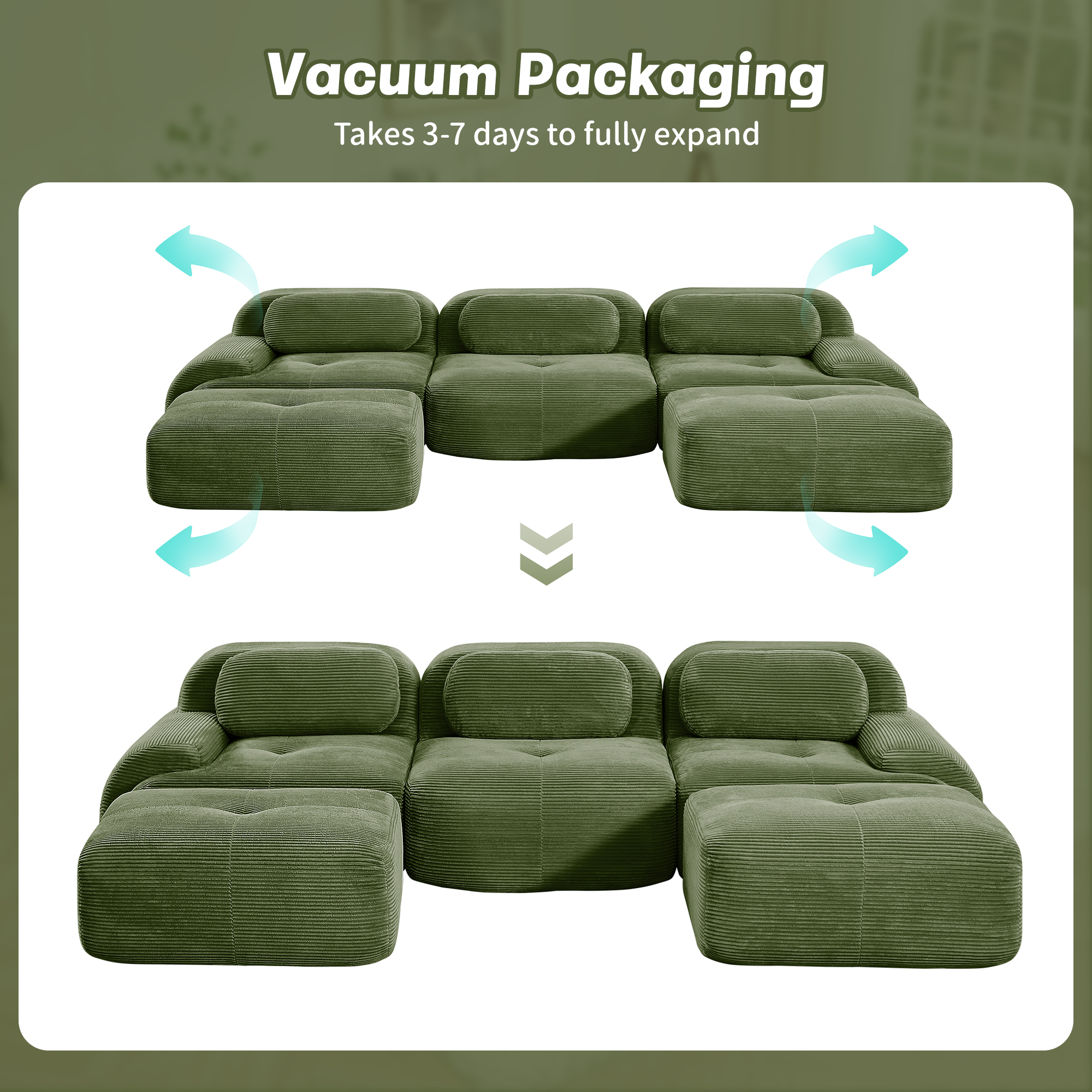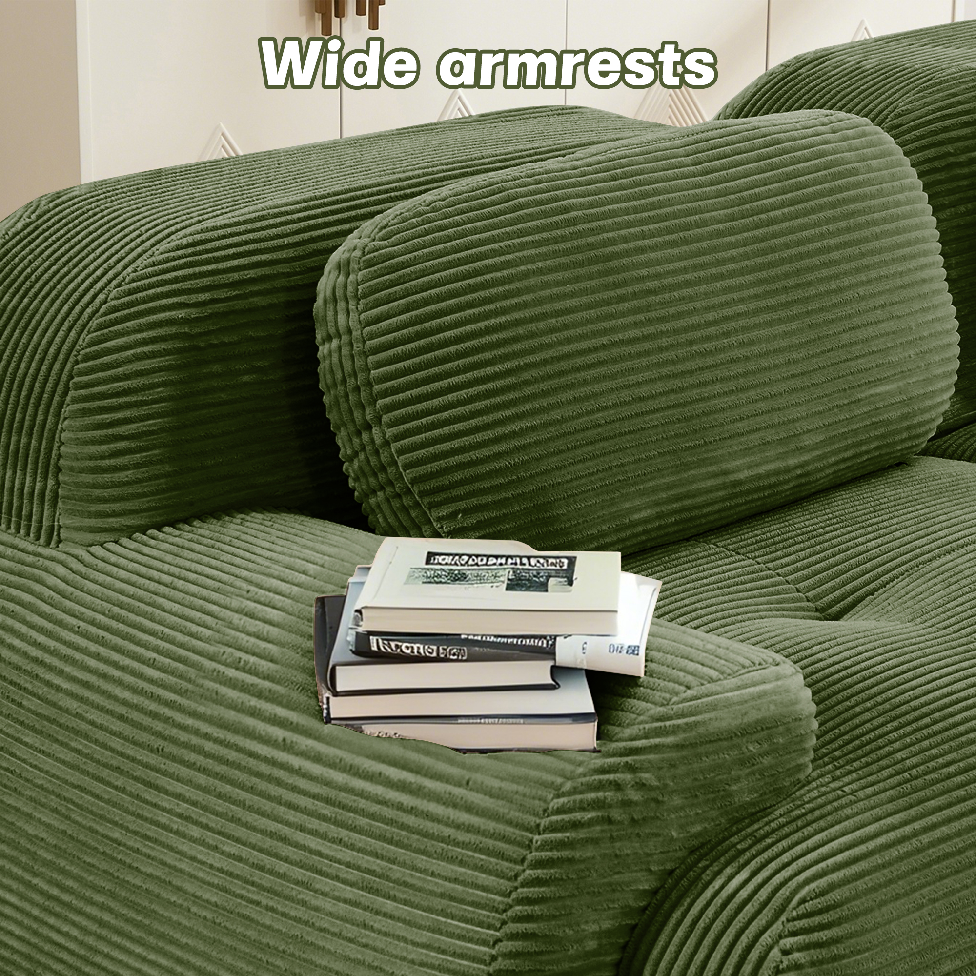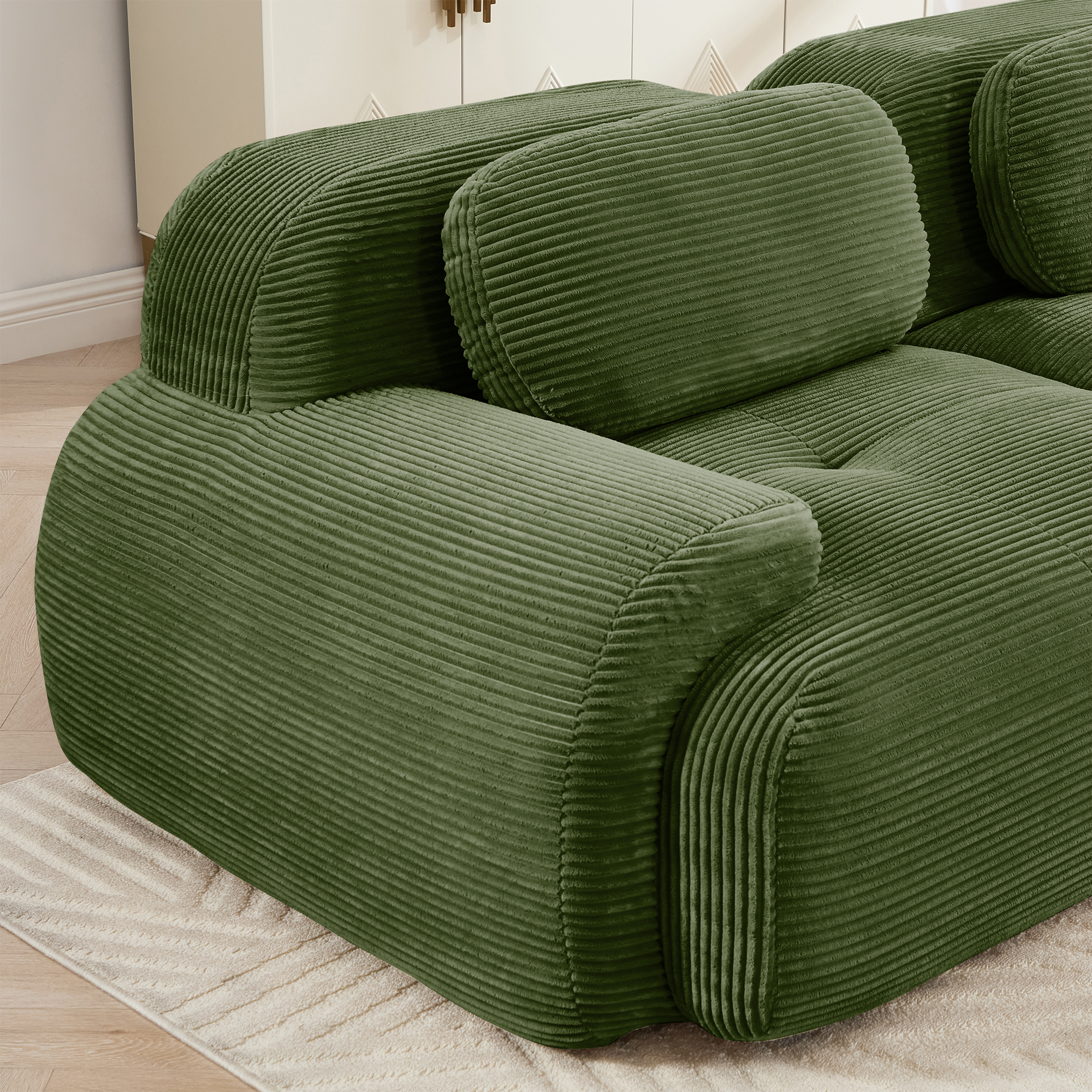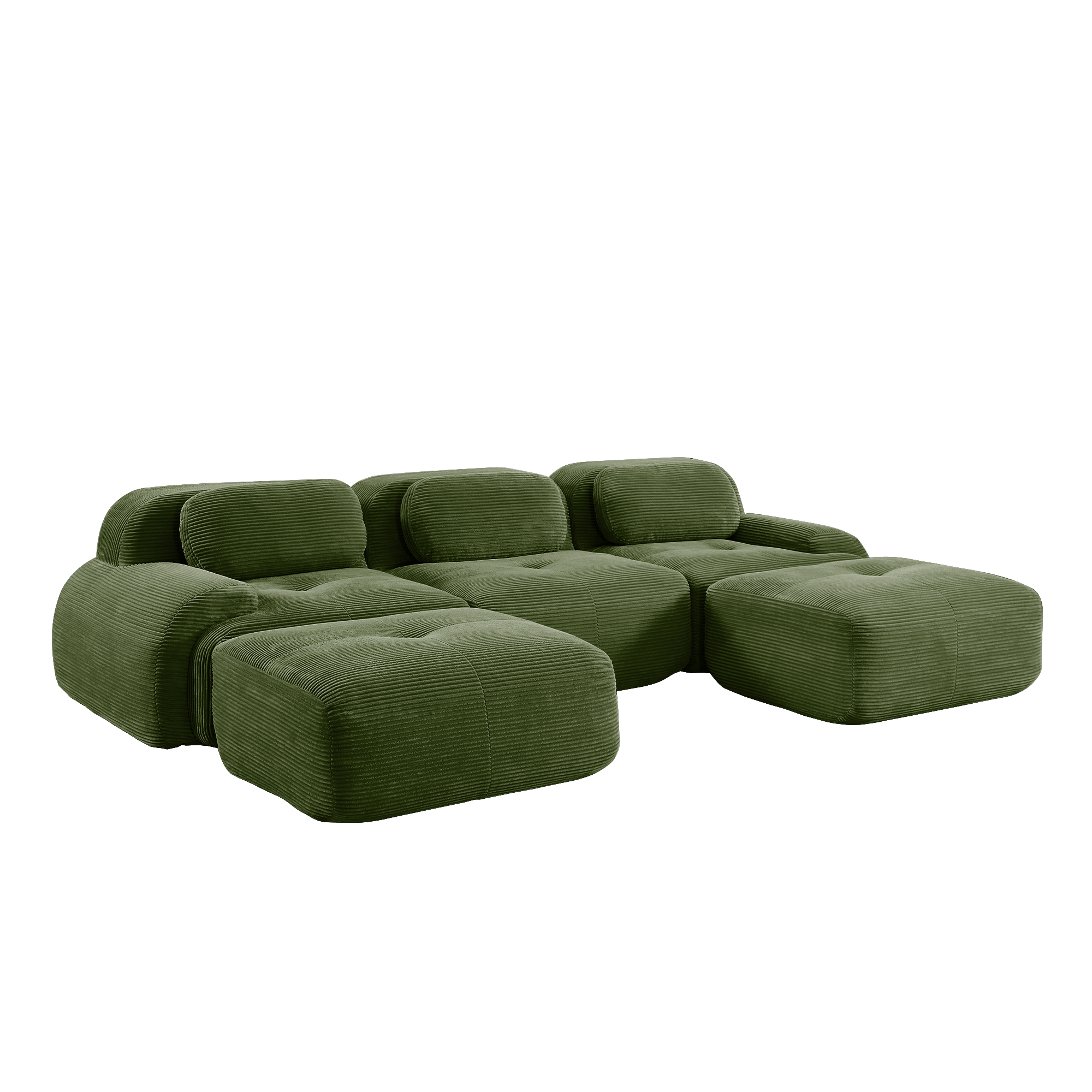Product Name:U-shaped modular sofa premiumCorduroy Fabric fabric no assembly anti-slip design pet-friendly extra-wide curved armrests 32D high-resilience sponge for living rooms bedrooms studie,Olive green