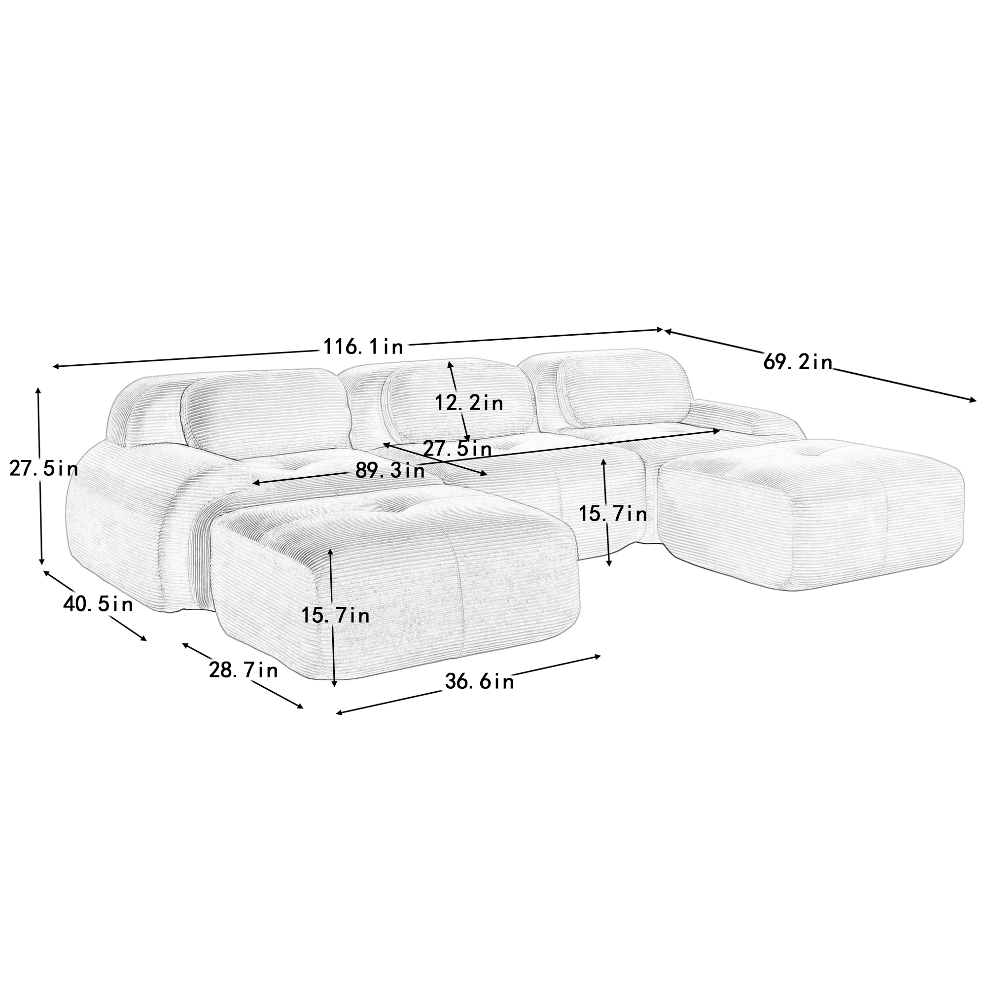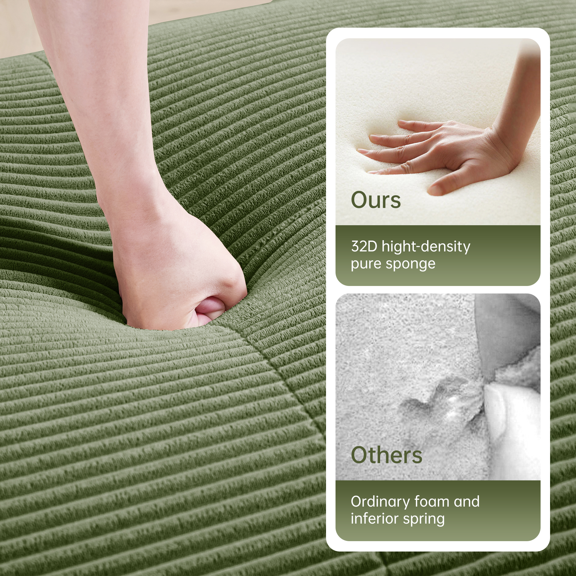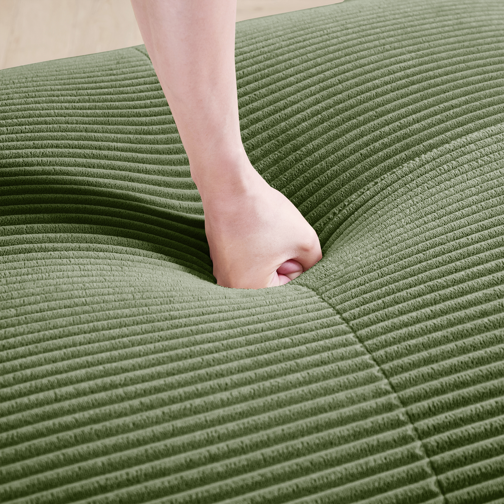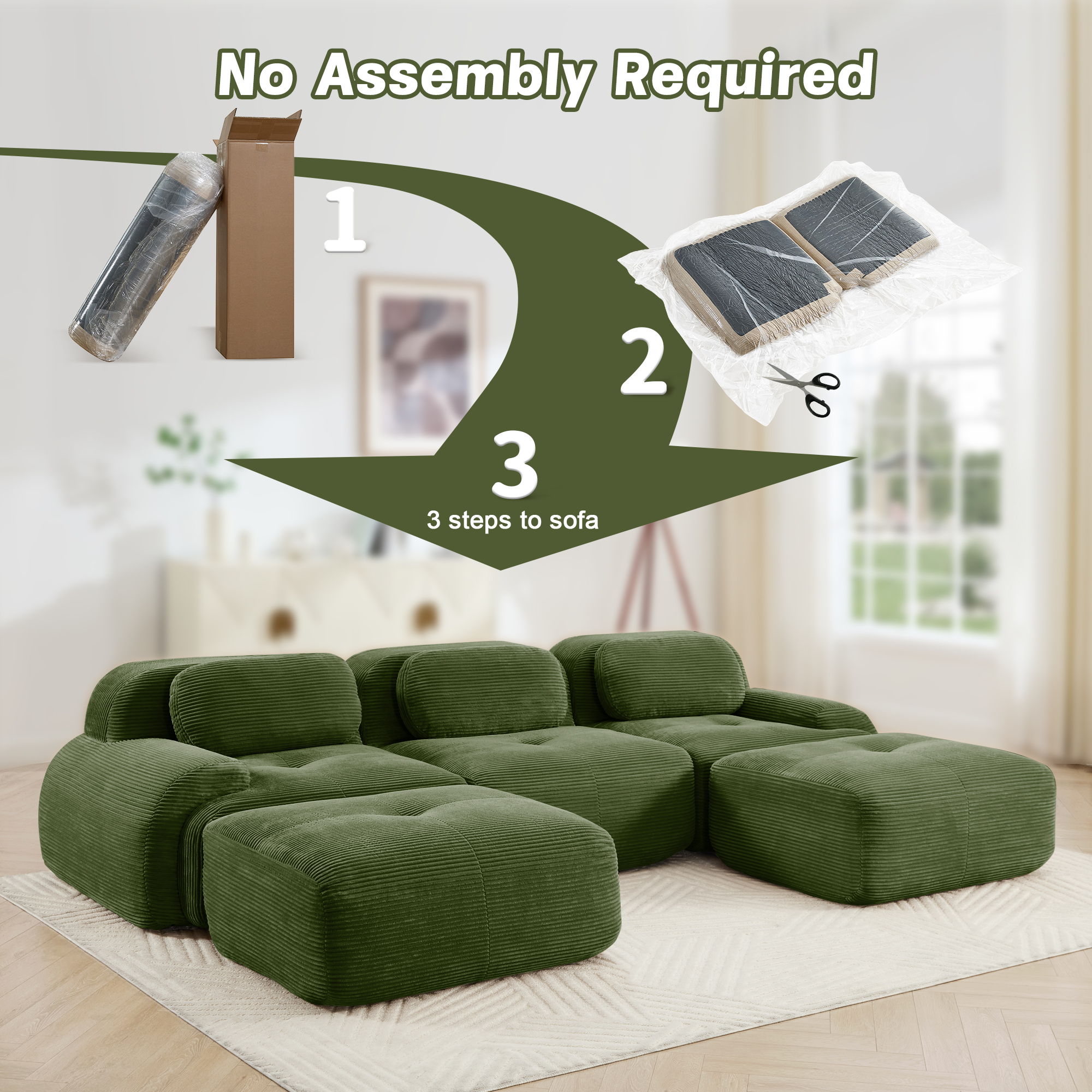 Product Name:U-shaped modular sofa premiumCorduroy Fabric fabric no assembly anti-slip design pet-friendly extra-wide curved armrests 32D high-resilience sponge for living rooms bedrooms studie,Olive green