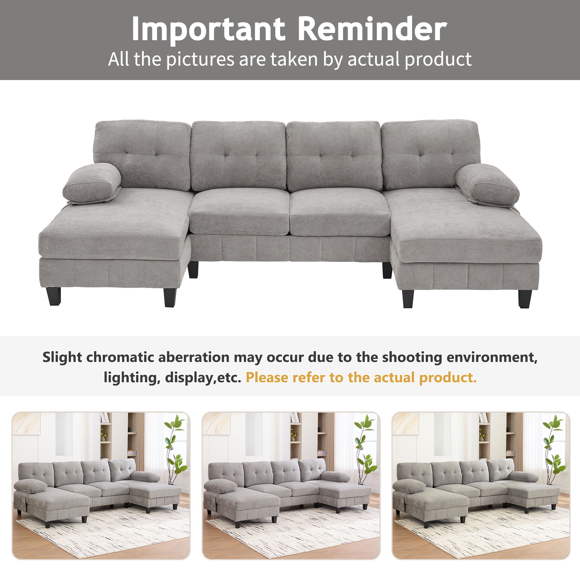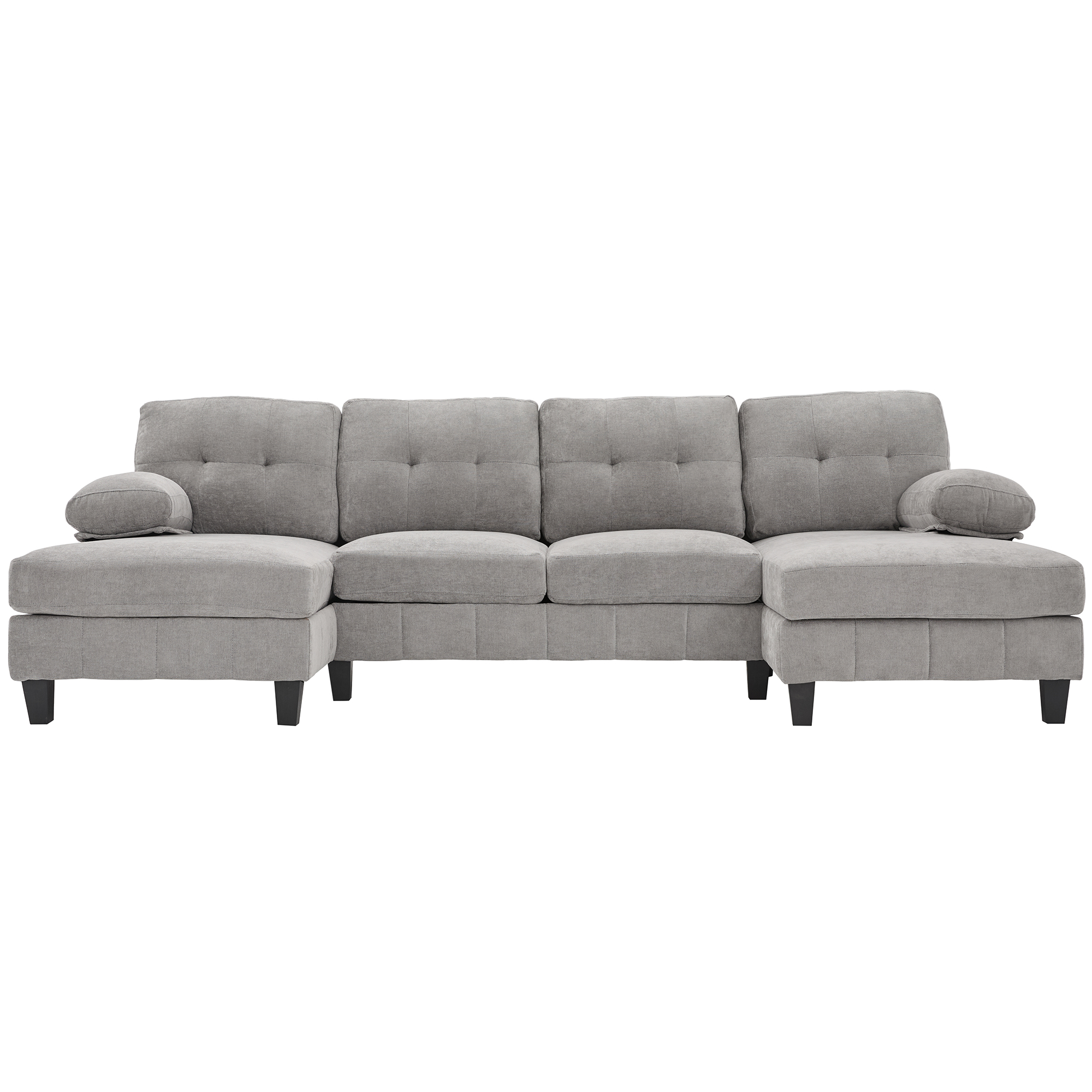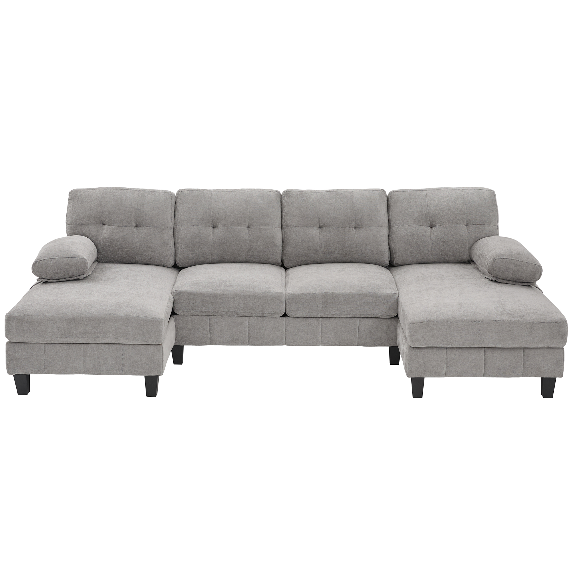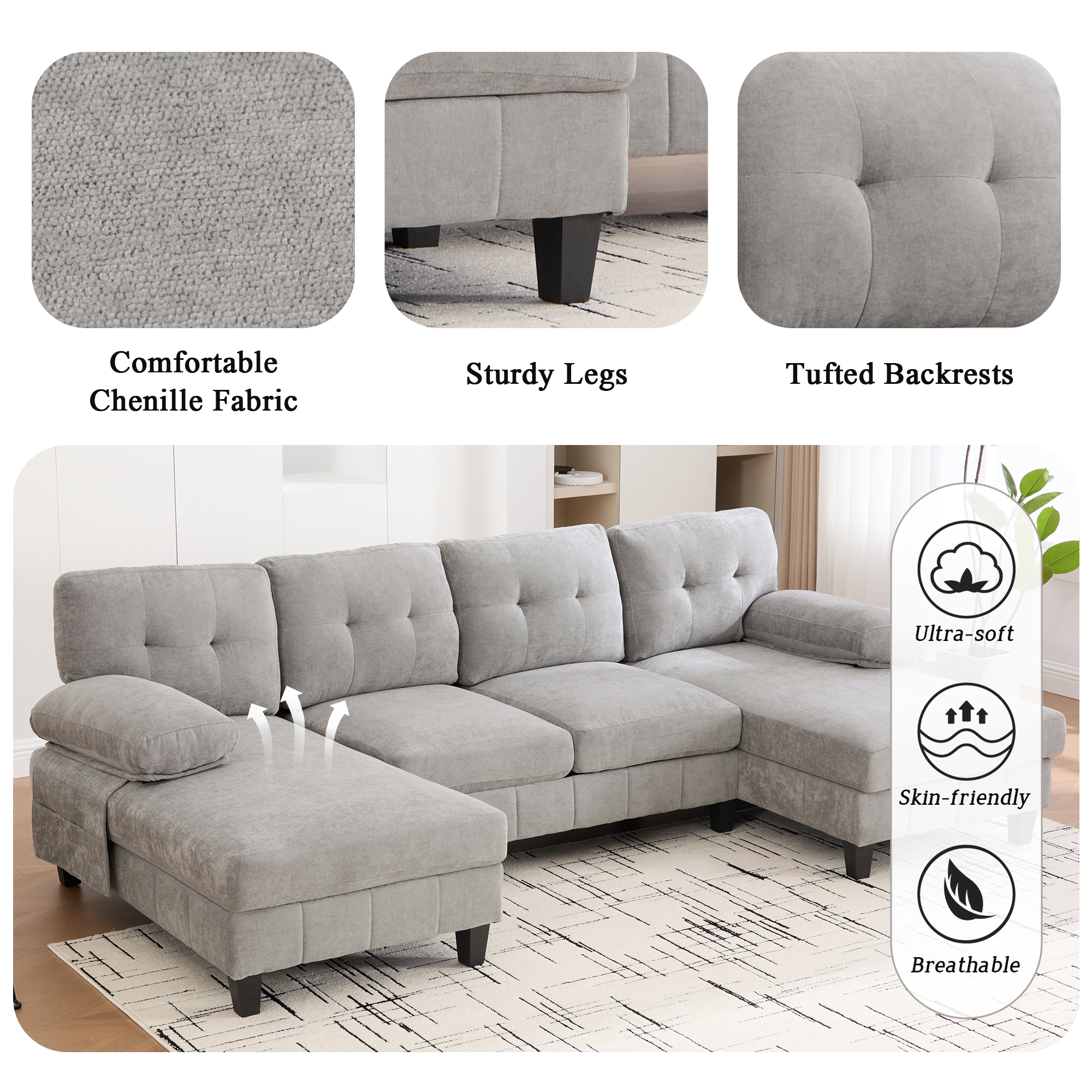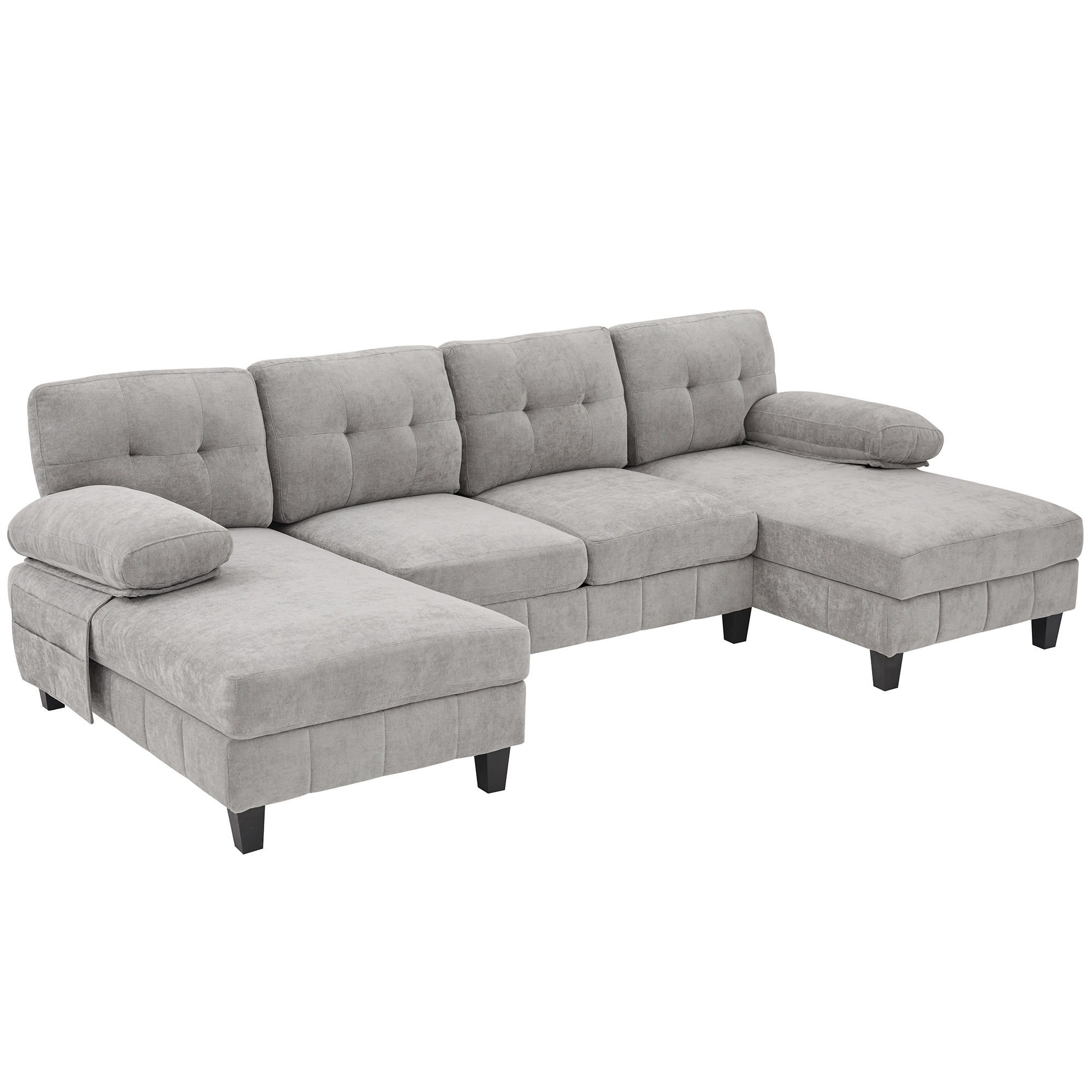 Product Name:U-shaped Sectional Sofa 103.5" Chenille Fabric Couch with Dual Chaise Lounges, Storage Pockets and Armrest Pillows for Living Room, Grey