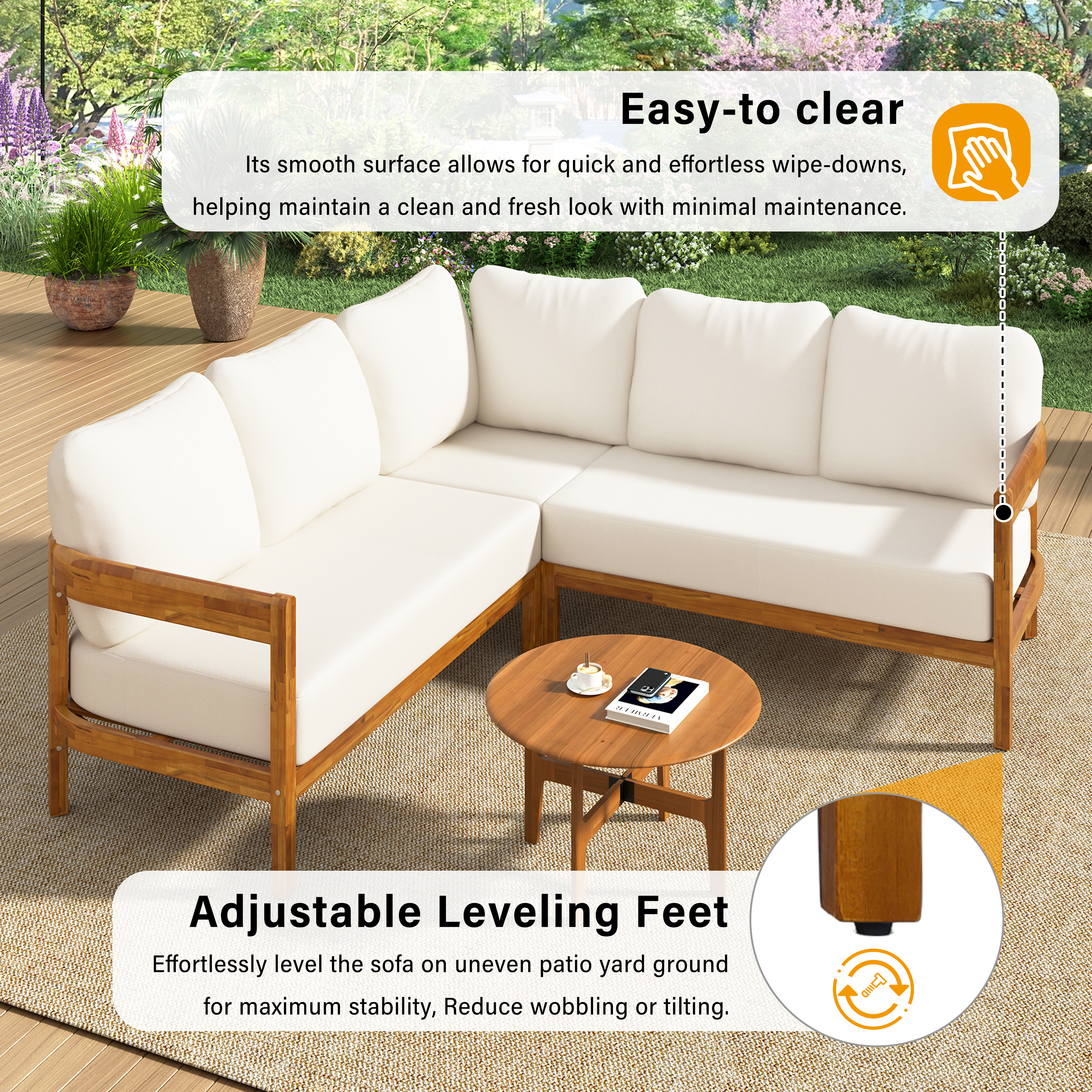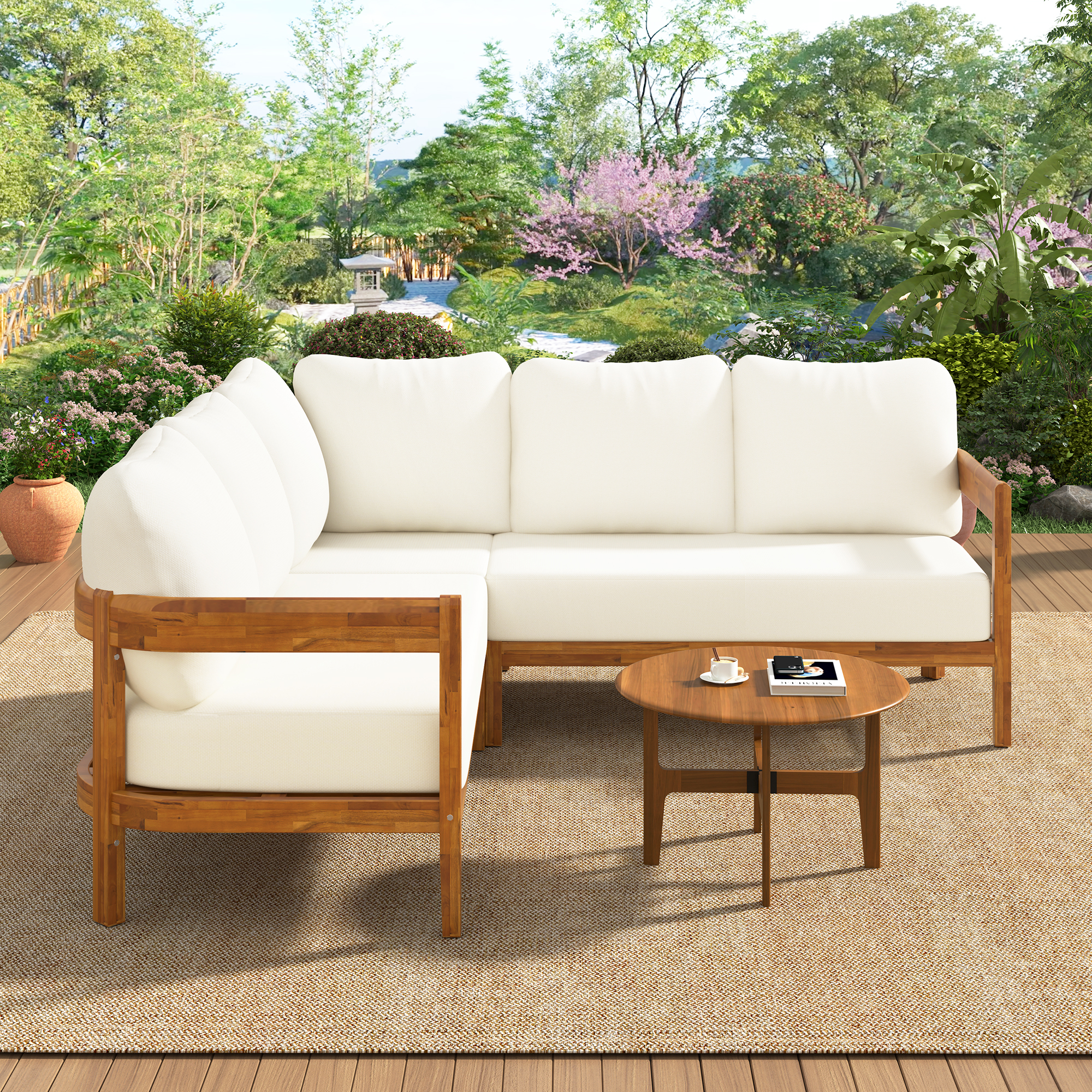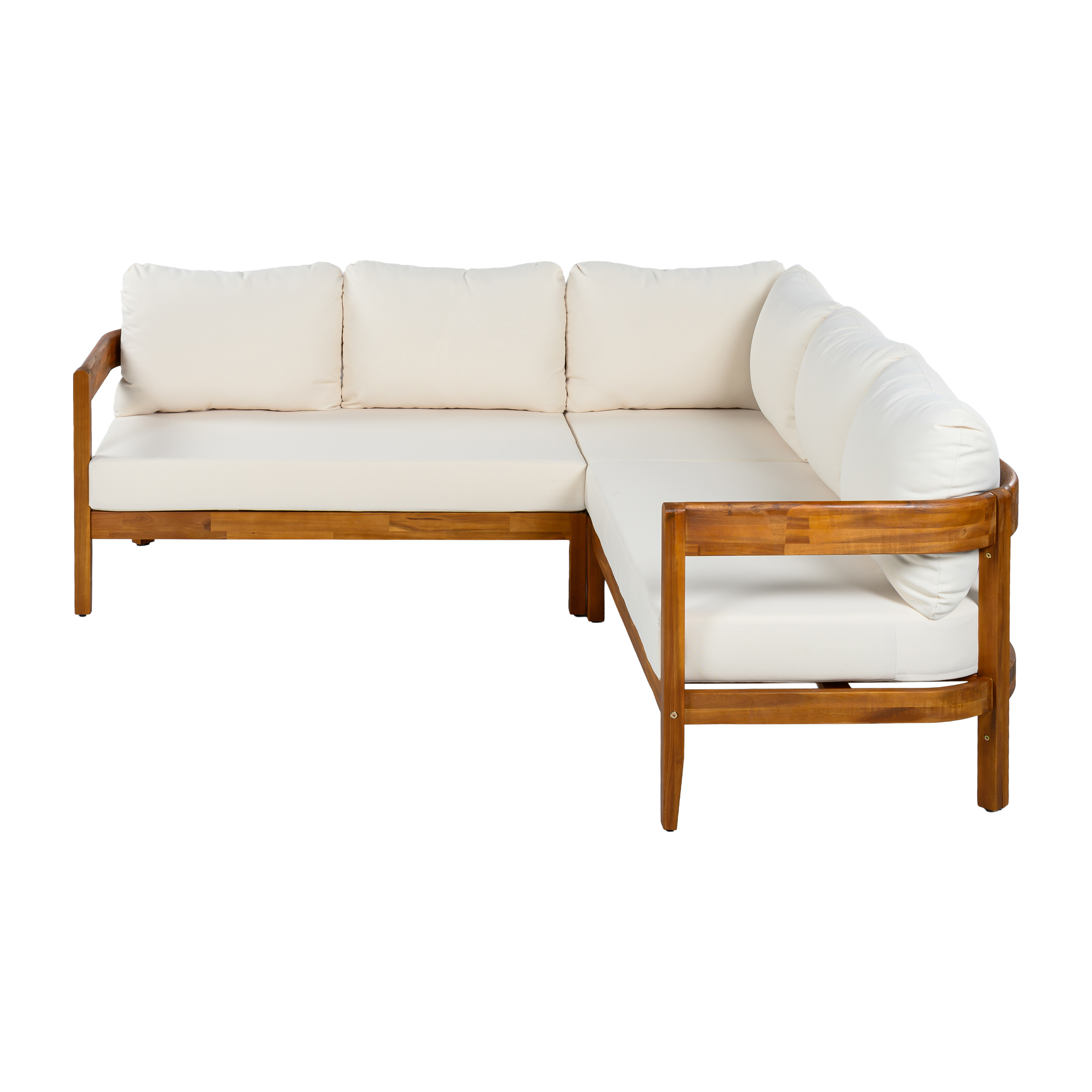 U-Style Acacia Solid Wood Patio Furniture Set Outdoor Patio Conversation Furniture Set With 6 Soft Seat Cushions And Backpack All Weather Outdoor Patio Sofa With Arc Frame For Backyard Garden.