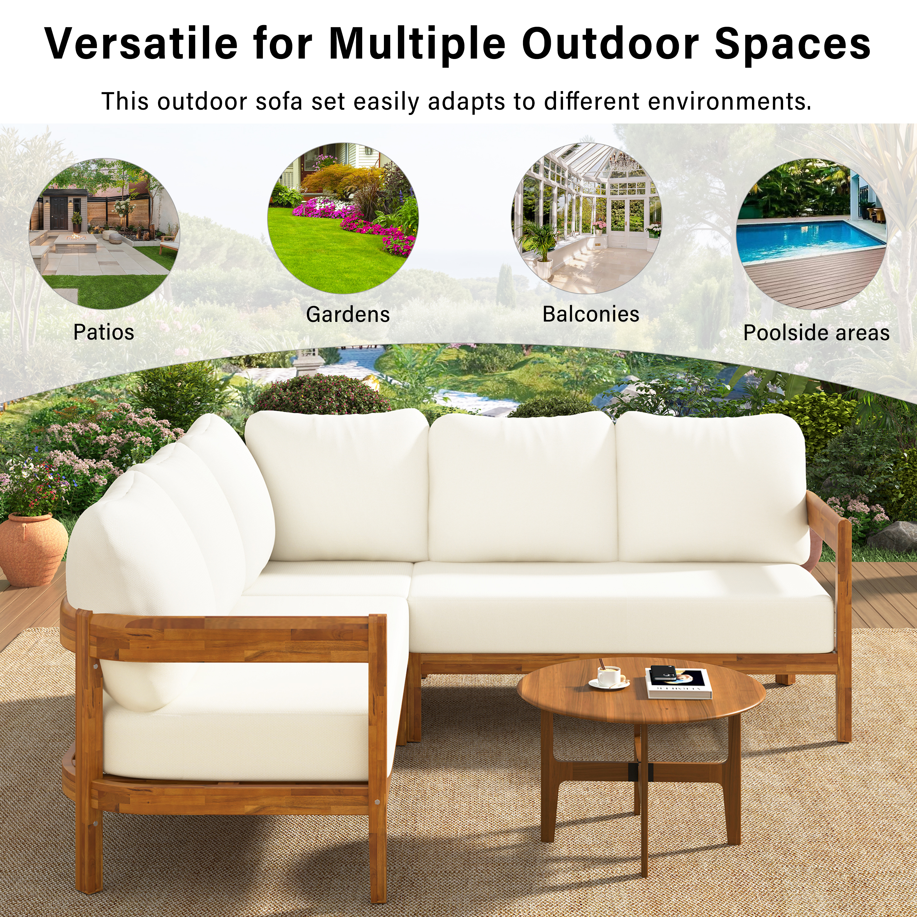 Product Name:U_Style Acacia Solid Wood Patio Furniture Set, Outdoor Patio Conversation Furniture Set With 6 soft seat cushions and Backpack , All Weather Outdoor Patio Sofa with Arc frame for Backyard, Garden.