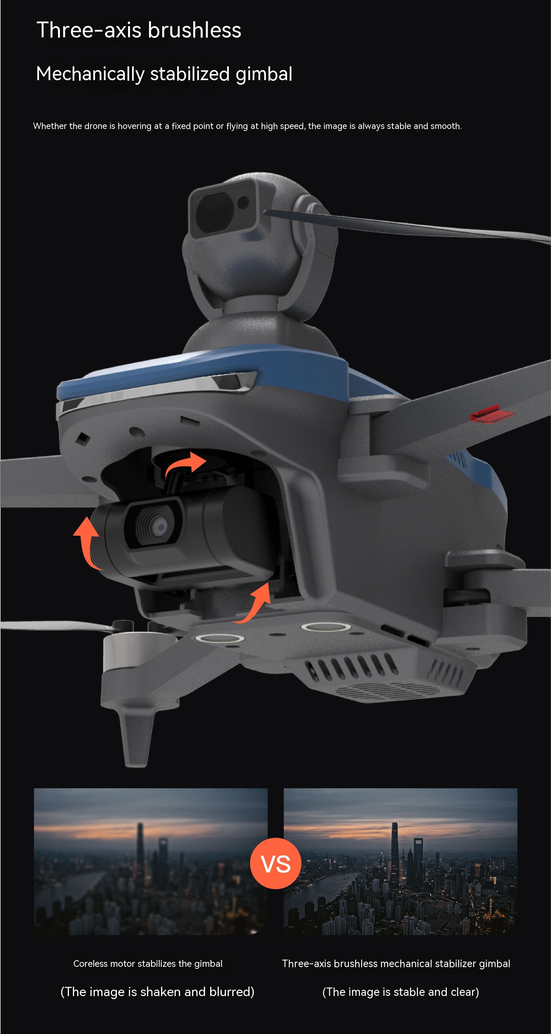 2. Three-axis brushless mechanical stabilization head, tilt-90 ° to 20 °