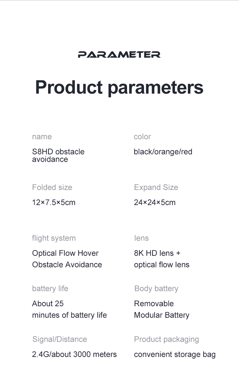 Color: S8 Orange [360 ° obstacle avoidance electric adjustment lens optical flow positioning] dual camera, S8 black [360 ° obstacle avoidance electric adjustment lens optical flow positioning] dual camera, s8 Red [360 ° obstacle avoidance electric adjustment lens optical flow positioning] dual camera, S9 Orange [360 ° obstacle avoidance electric adjustment lens automatically return GPS positioning] dual camera, s9 black [360 ° obstacle avoidance electric adjustment lens automatically return to GPS positioning] dual camera, s8S Orange [360 ° obstacle avoidance electric adjustment lens optical flow hover] small size, s8S black [360 ° obstacle avoidance electric adjustment lens optical flow hover] Small size