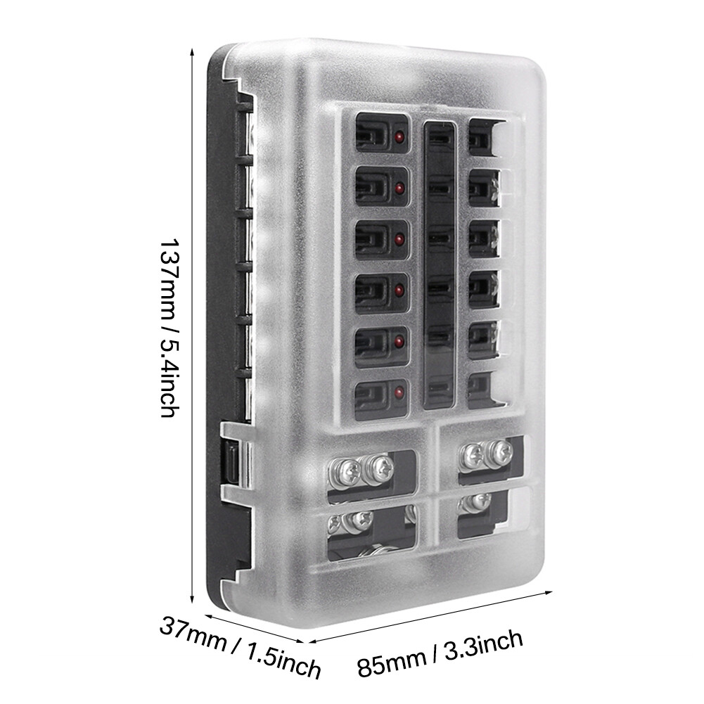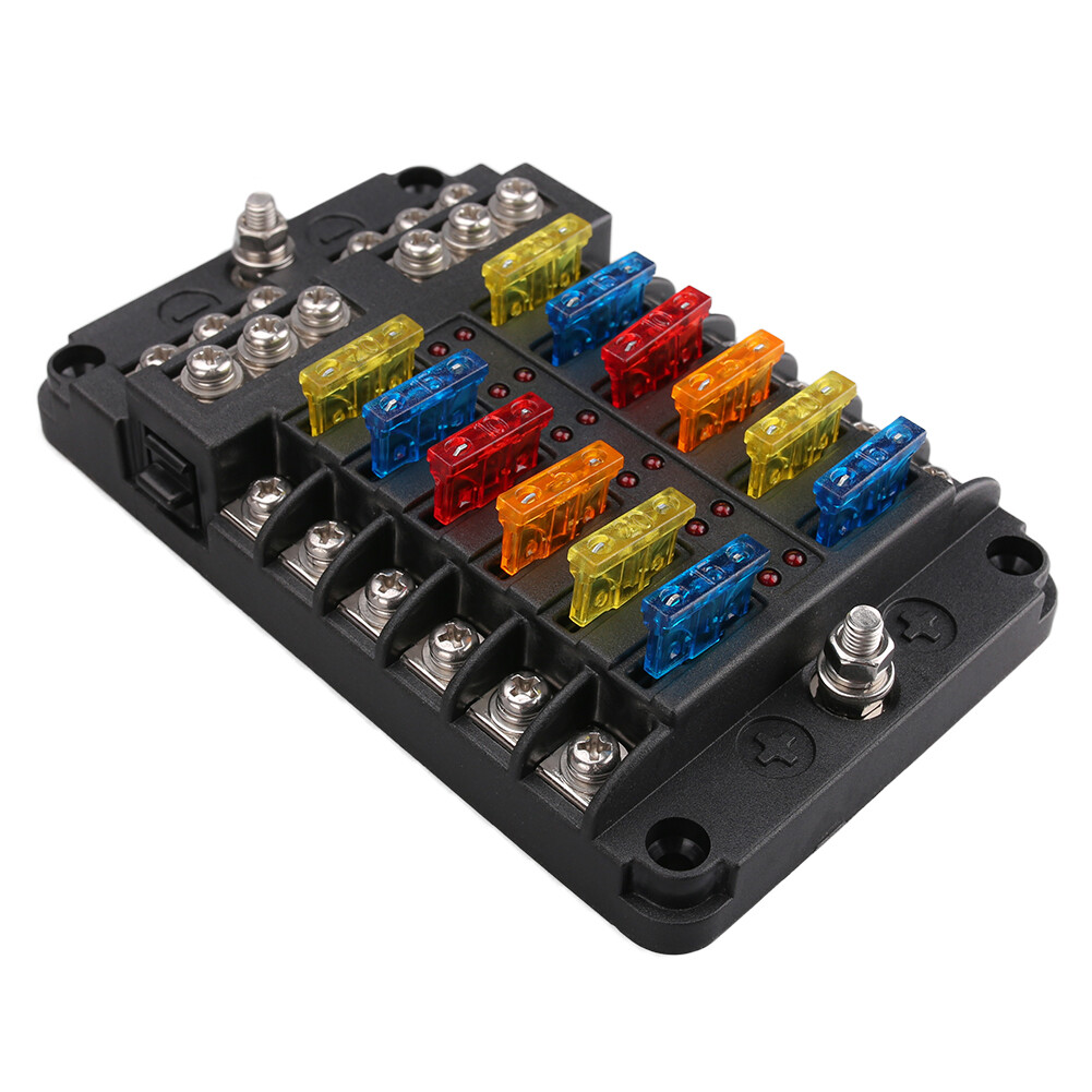 Can be widely used in autos, eco-cars, modified cars, buses, subways, airplanes, tankers, ships, boats etc 12-Way Fuse Box.