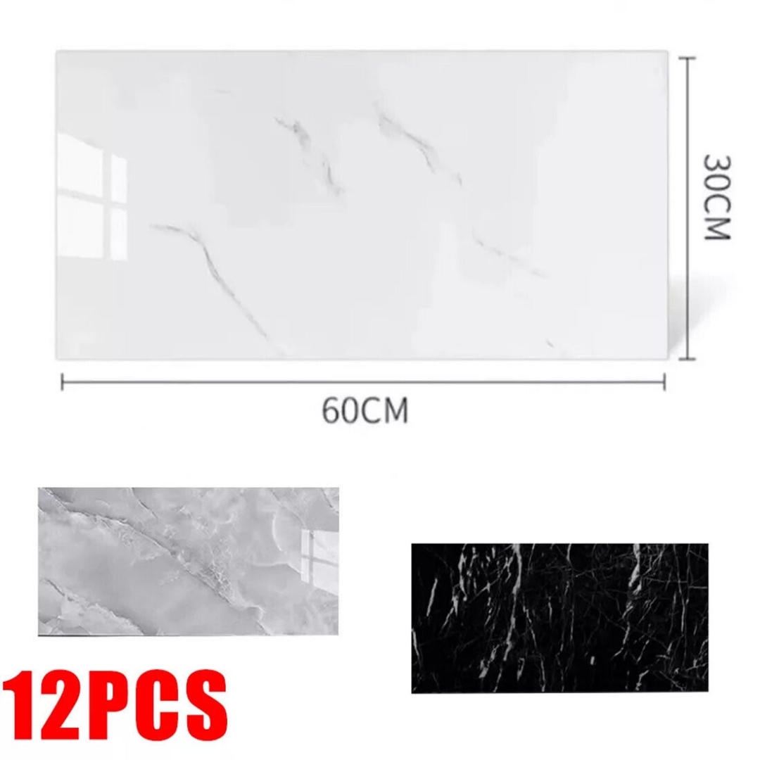 UK NEW 12x Self-Adhesive Marble Tiles Wall Sticker Stick On Kitchen Bathroom Home Decor---Earl Grey