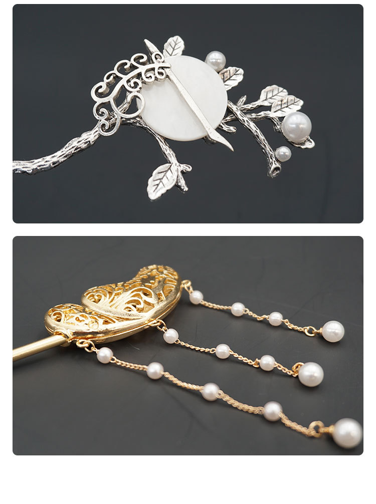 Product information :Material: alloyStyle: retroColor: [A006] Hollow pearl hairpin