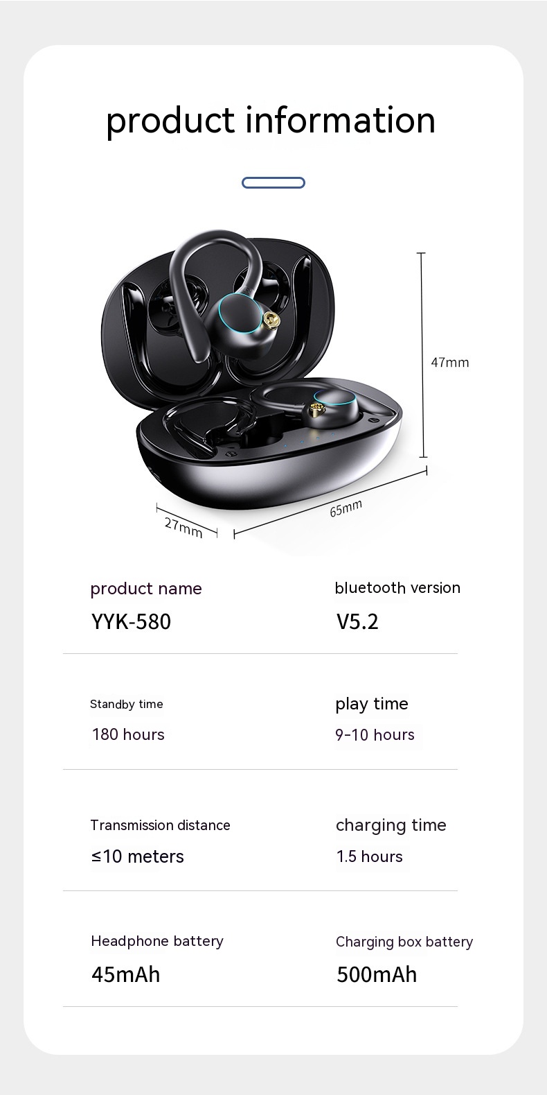 Functions: wireless charging, noise reduction, call function, NFC function, voice control, music support