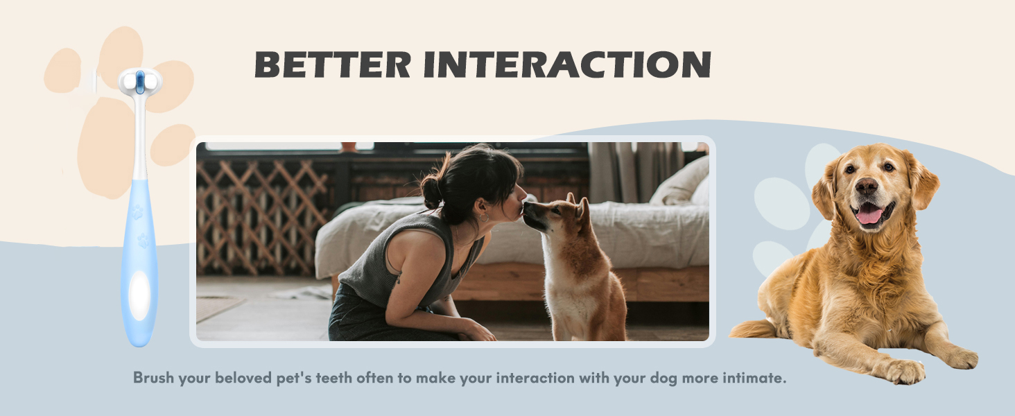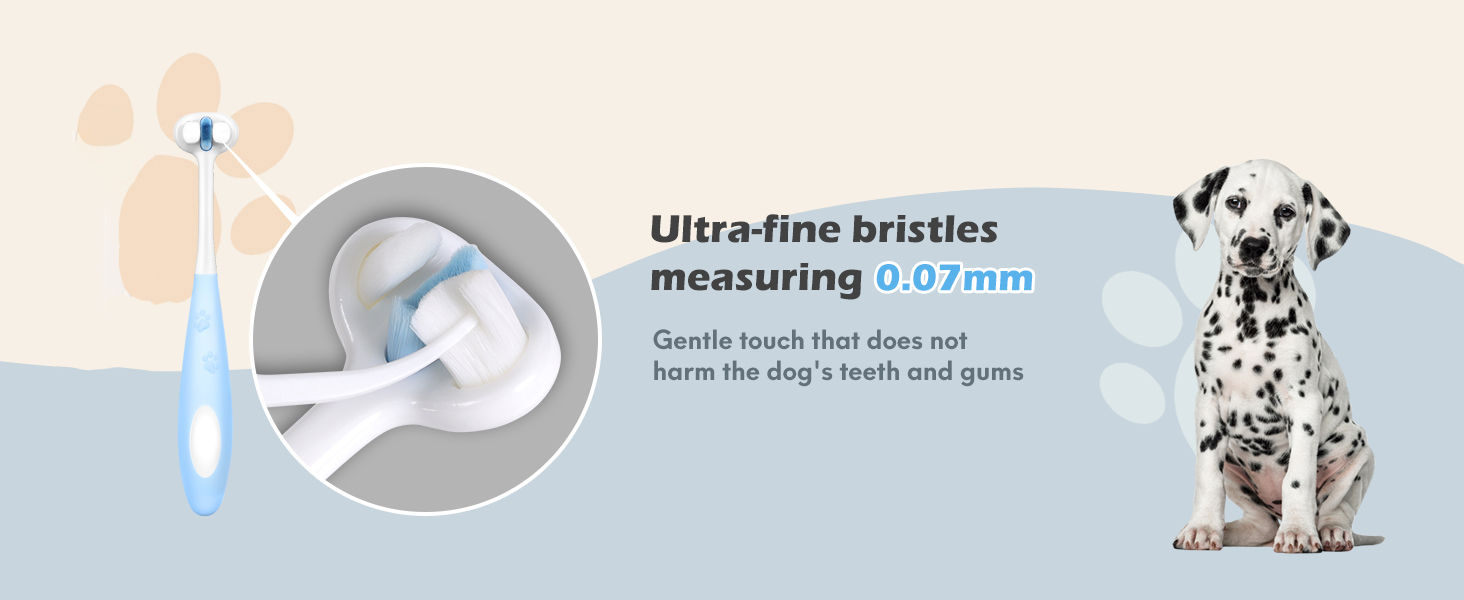 【Nano Bristles】: Ultra-soft nano bristles ranging from 0.07mm to 0.1mm guarantee deep cleaning between teeth without irritating your pet's sensitive teeth and gums. This leads to higher acceptance among dogs.