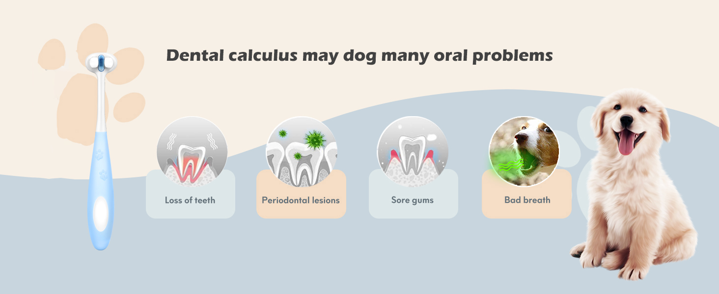 【3-Sided Design】: Our product features a unique 3 sided brush arrangement, with each side designed at the optimal angle for teeth cleaning. This design ensures complete coverage of your dog's teeth during brushing, providing thorough cleaning results.