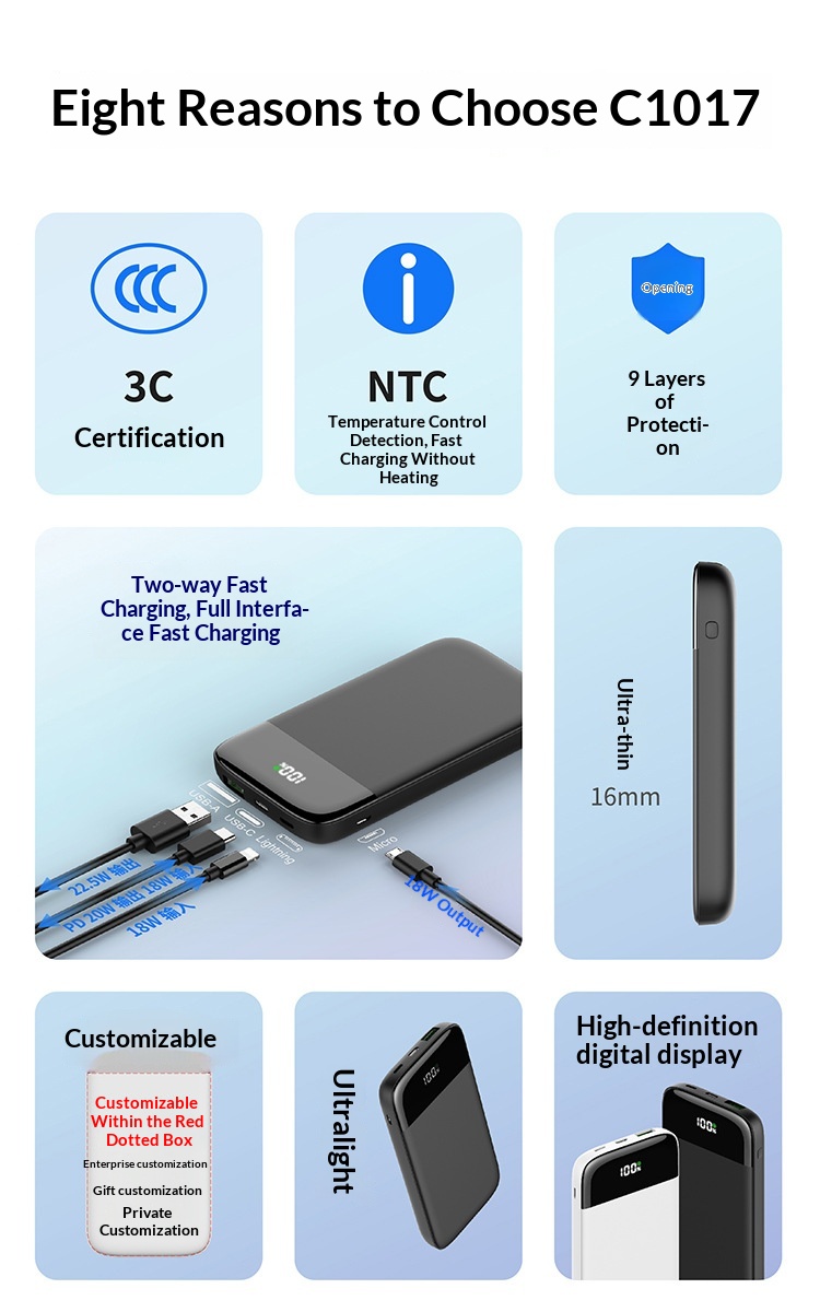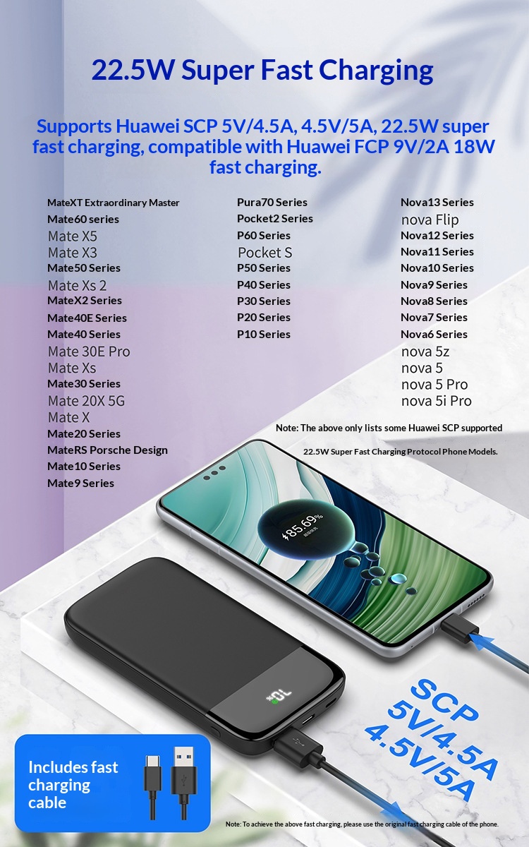 Features: Multiple USB outputs, supports fast charging, digital battery level display