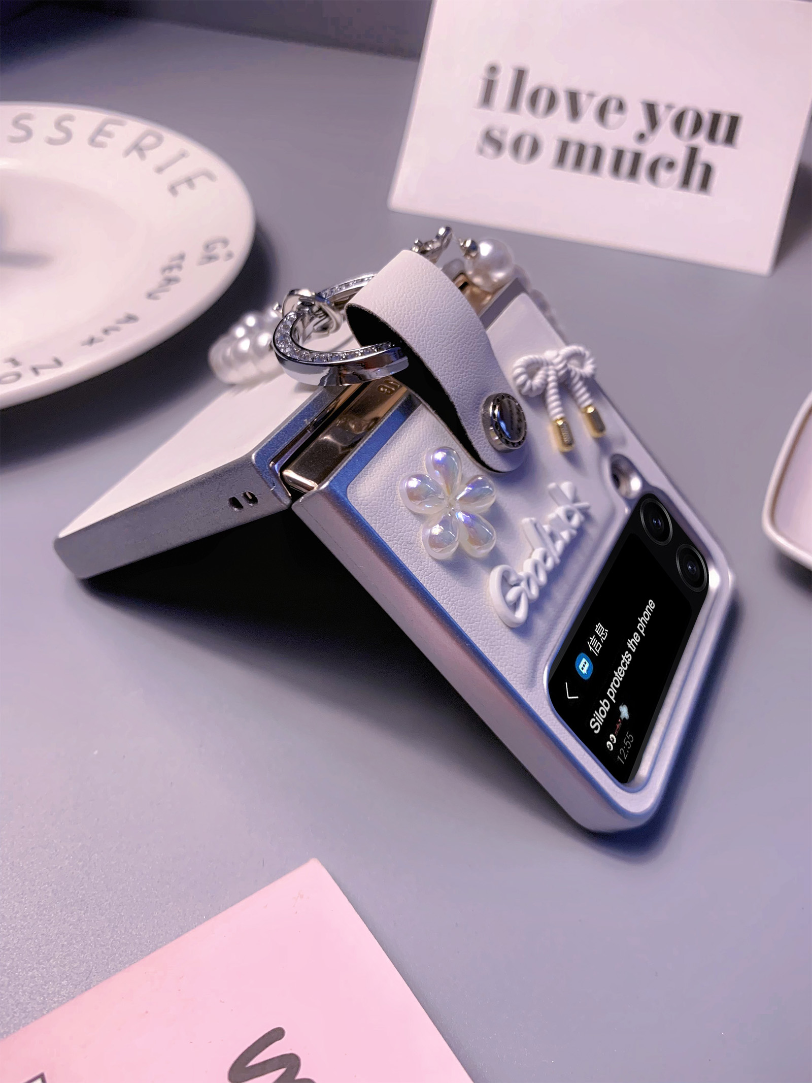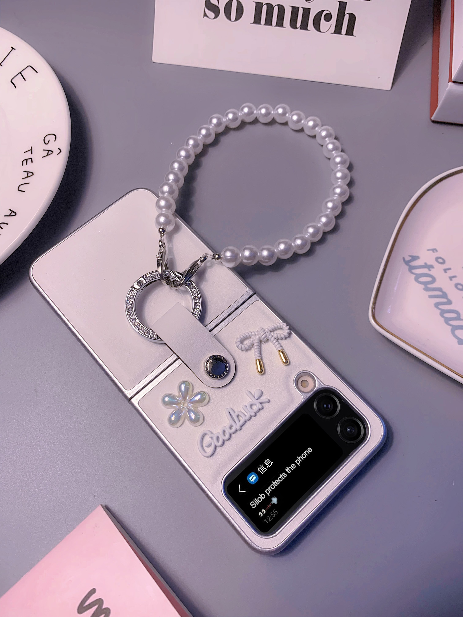 Color classification: white silver border leather pattern/flower bow+bracelet