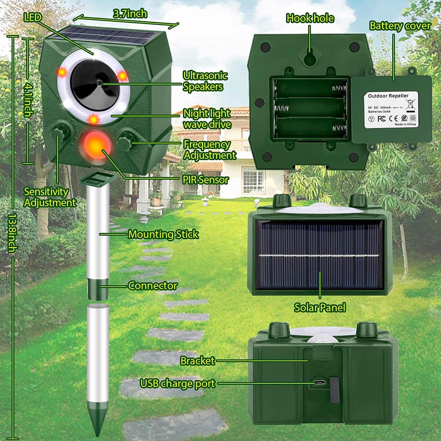 Ultrasonic Dog Repeller Charging Voice Solar Bird Repeller