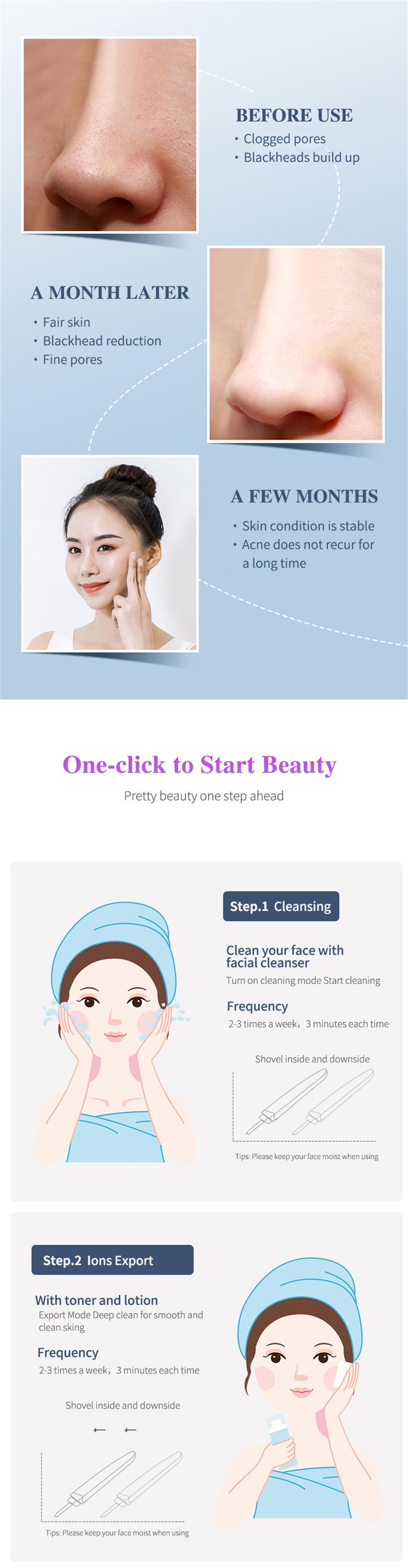 1. Deep cleaning: 45 degree Angle method accelerates epidermal cell metabolism, restores normal renewal rate, promotes aging and shedding of irregular abnormal cells, sofens keratin, rearranges epidermal cells, and restores skin elasticity and firm, smooth and delicate skin.