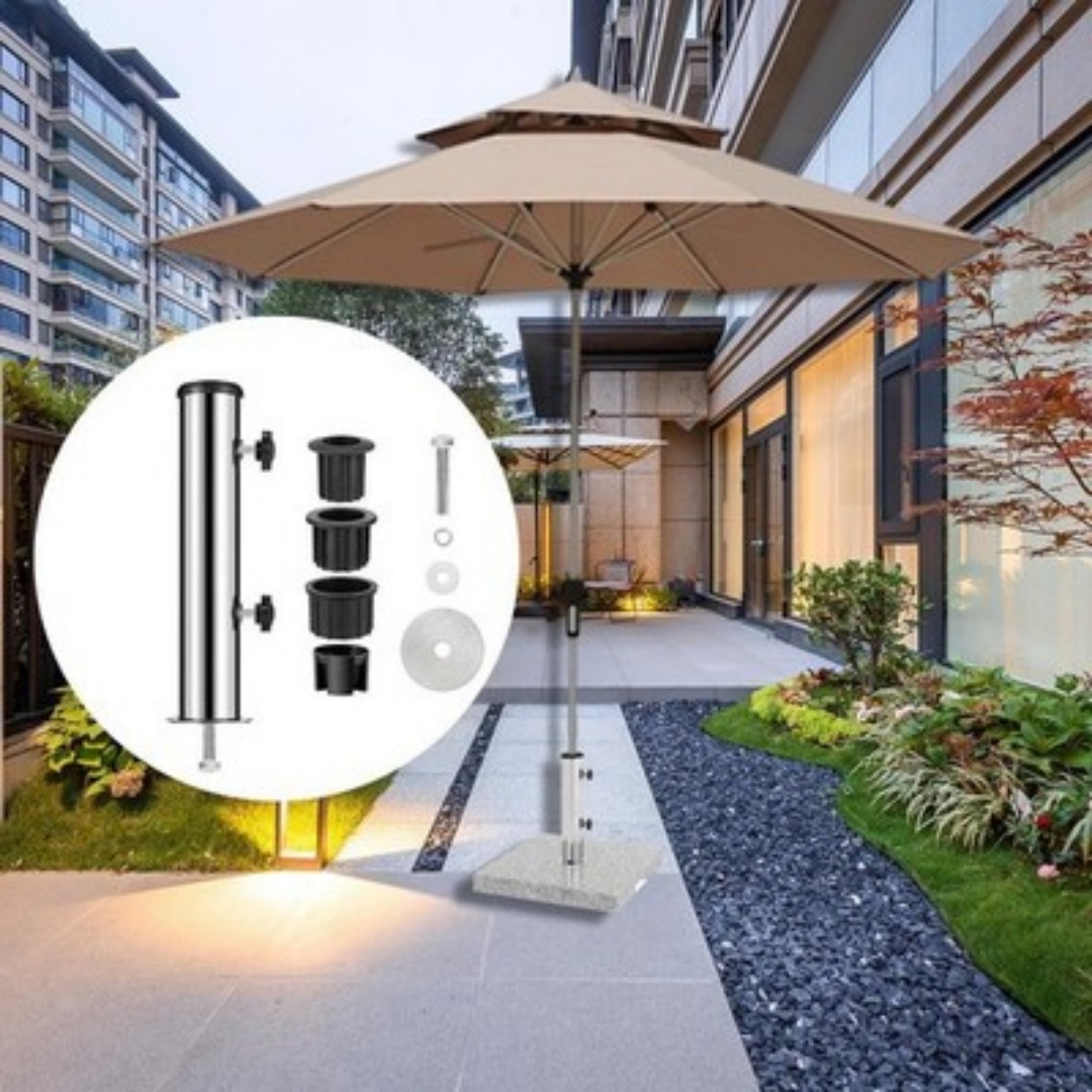 【Durable material】This umbrella base stand is made of stainless steel. Outdoor umbrella base is practical, waterproof, sunscreen, heat resistant.