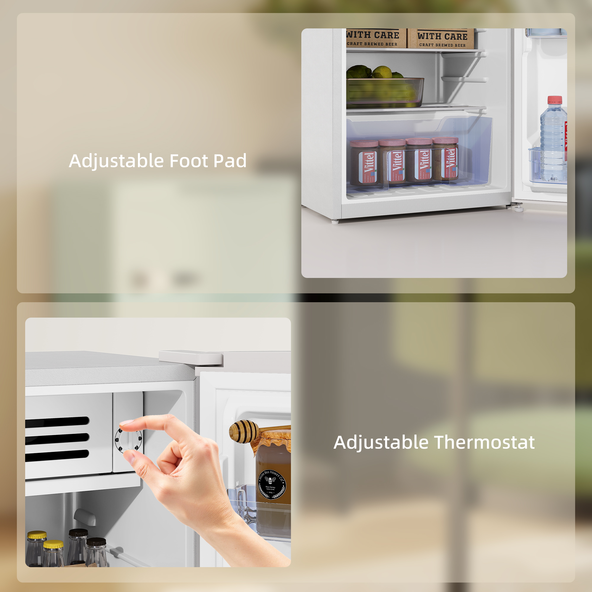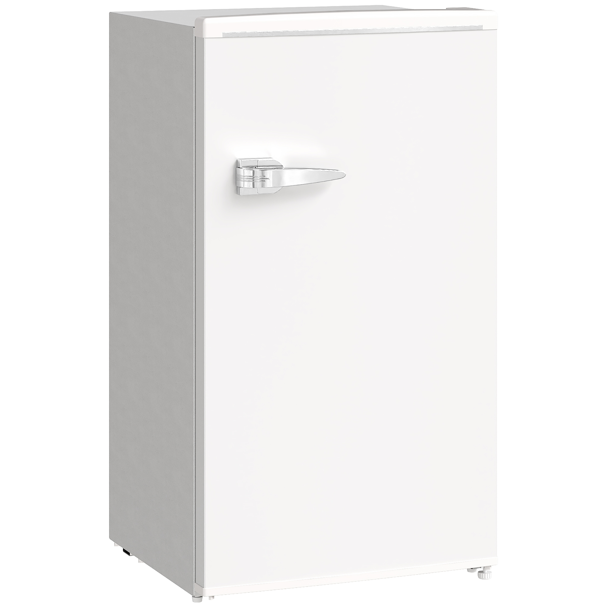 Looking for a free standing fridge for your flat, RV, shared room, or home office? The under counter fridge with ice box is great for keeping food, drinks and snacks fresh and organised. Its compact size makes it suit for small spaces. With a stylish retro design and a classic handle, it combines practicality and style. Enjoy the convenience of an adjustable thermostat and an interior light - this white fridge is great for any room.